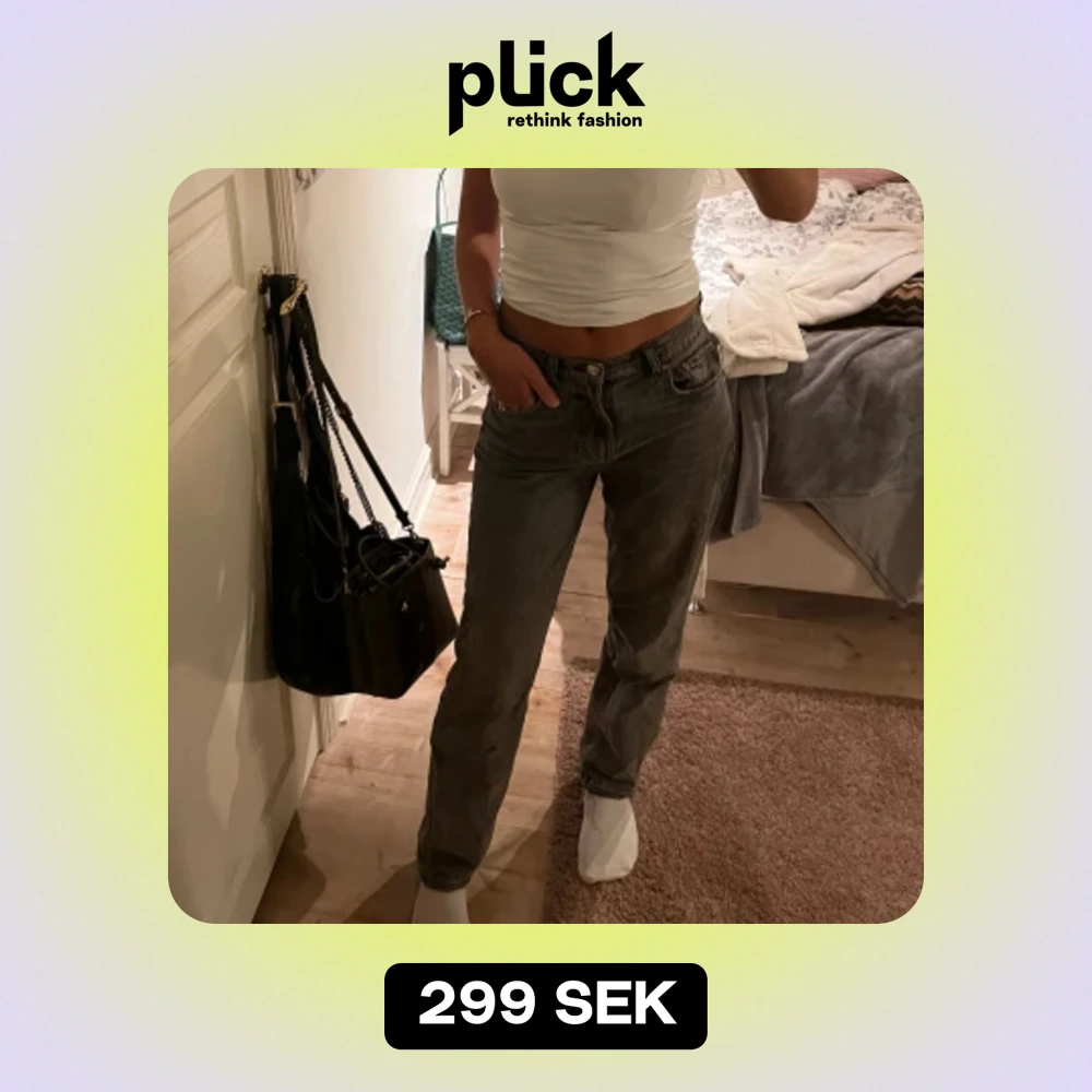 Mörkgrå jeans från Gina Tricot med medelhög midja!! Långa i benen (jag är 177cm), sitter inte jättetajt runt om på mig. Rakmodell💗