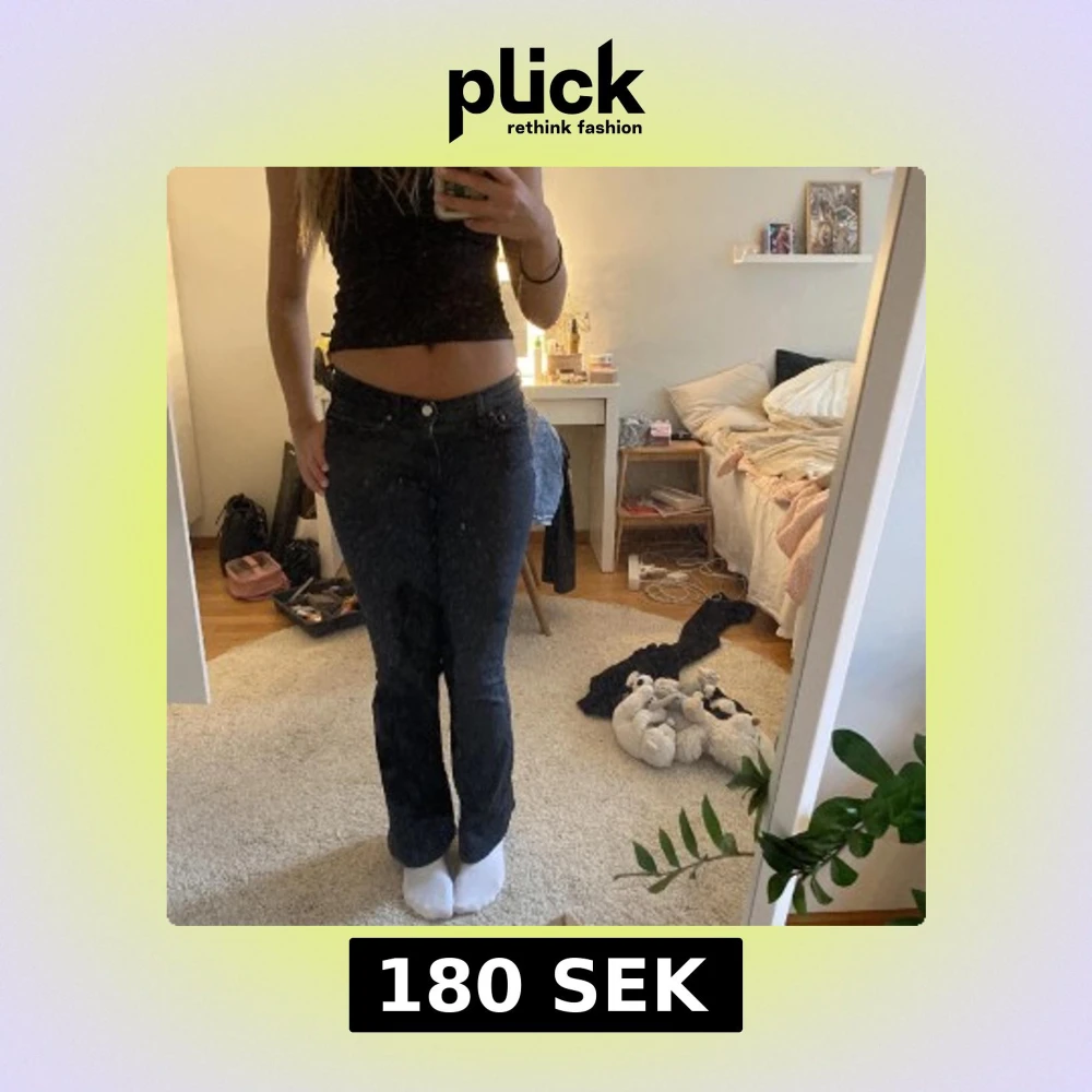 Snygga svarta bootcut jeans med låg midja. Perfekta för en stilren look. Passar bra till både vardag och fest. Från Ginatricot i storlek 36💞priset kan diskuteras vid snabbt köp