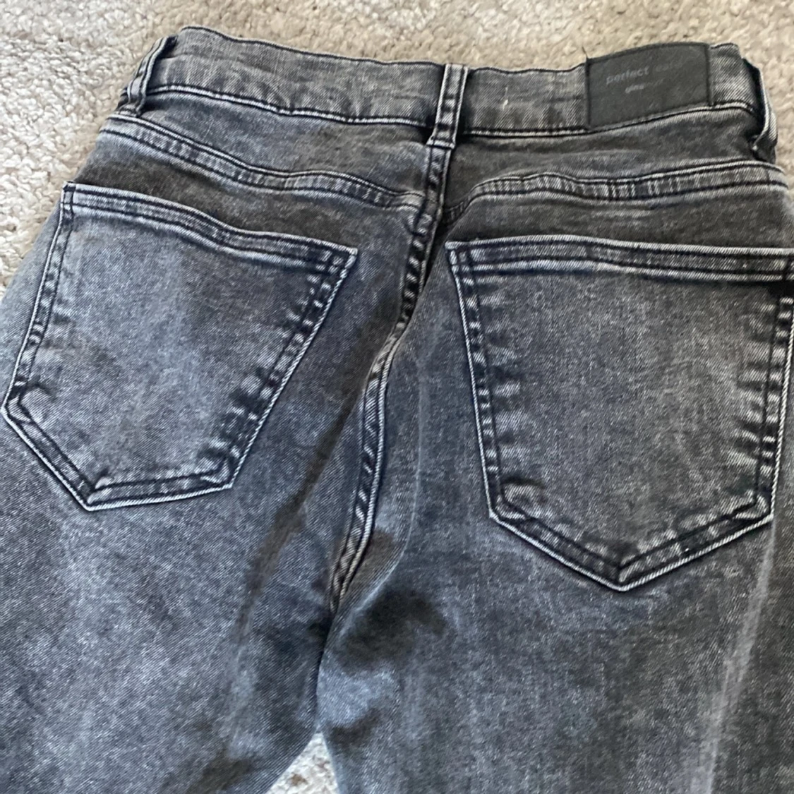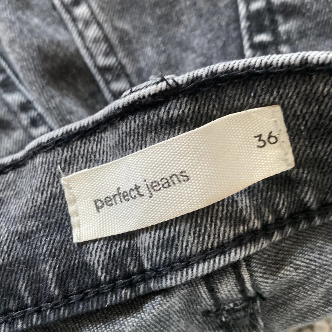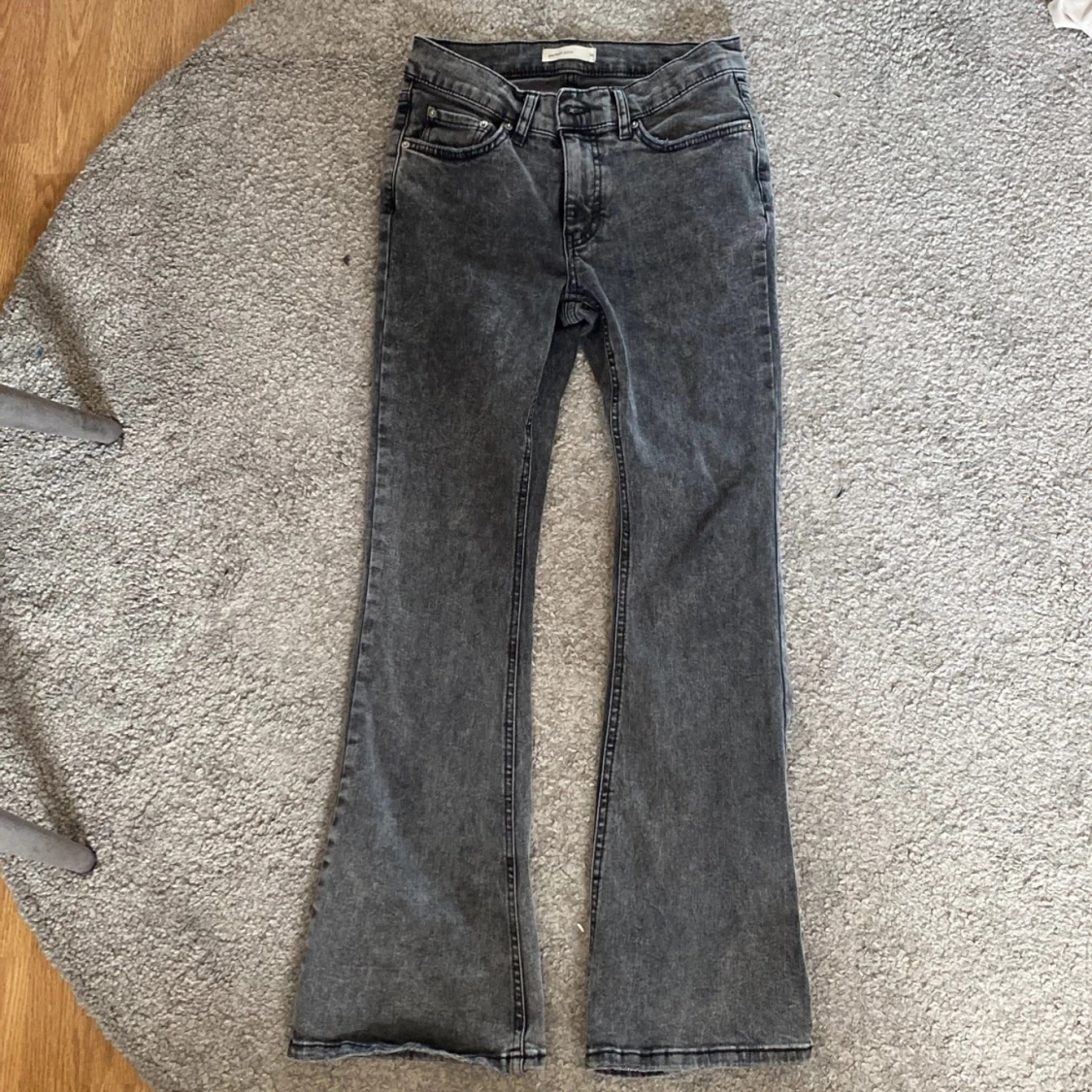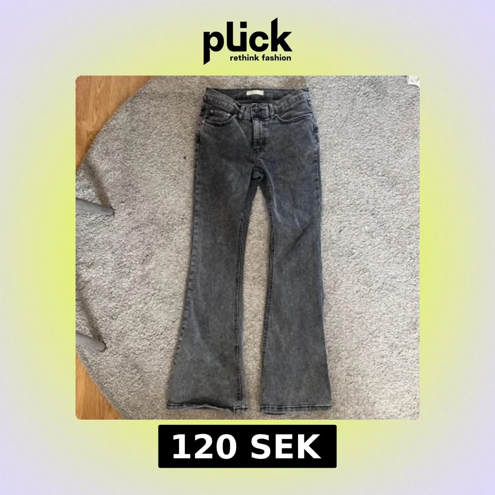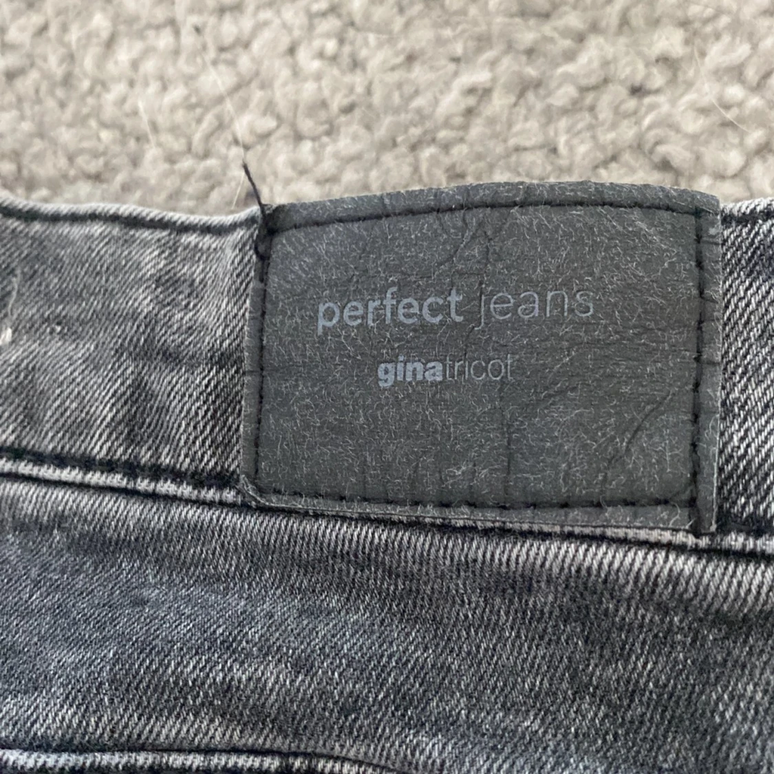 Säljer ett par grå bootcut jeans från Gina Tricot, modell Perfect Jeans. De är petit alltså för folk som är kortare. Jeansen har klassisk femficksdesign, normal passform upptill och utsvängda ben. Perfekta för dig som gillar en retroinspirerad look.