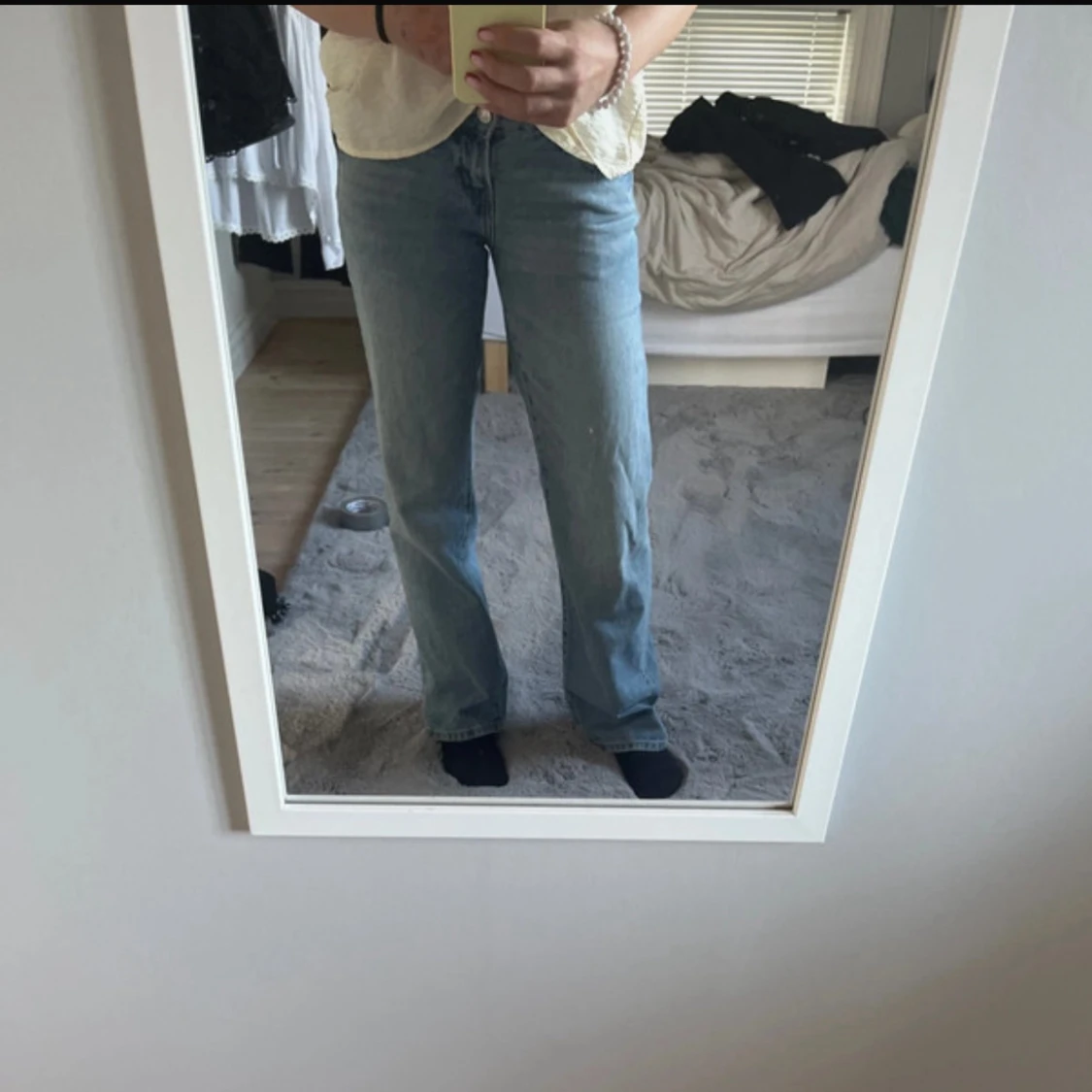 Säljer ett par lågmidjade raka jeans från Gina tricot. Använda 2 ggr så jättebra skick, jag är 166