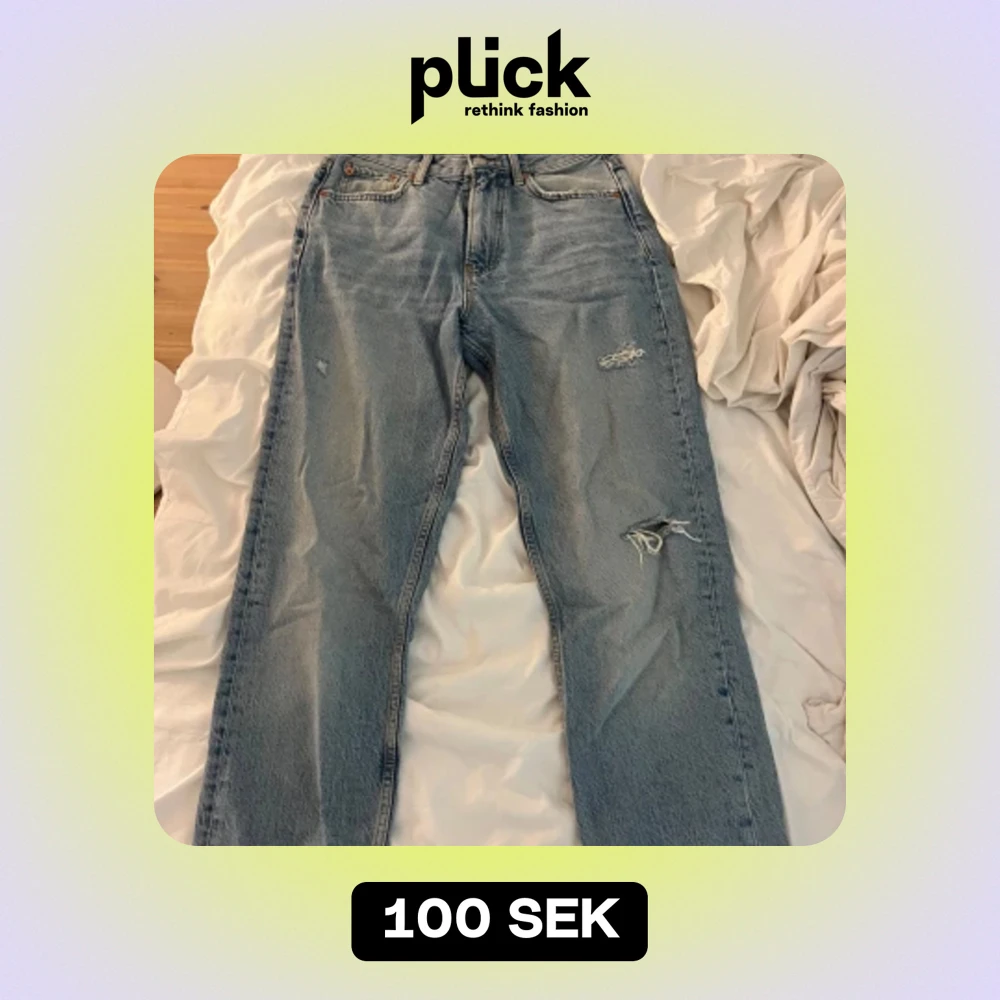 Snygga jeans från Gina tricot, dom är Högmidjade, typ till naveln! Inga hål eller fläckar och inte använd många gånger. Normal i storleken🫶🏻