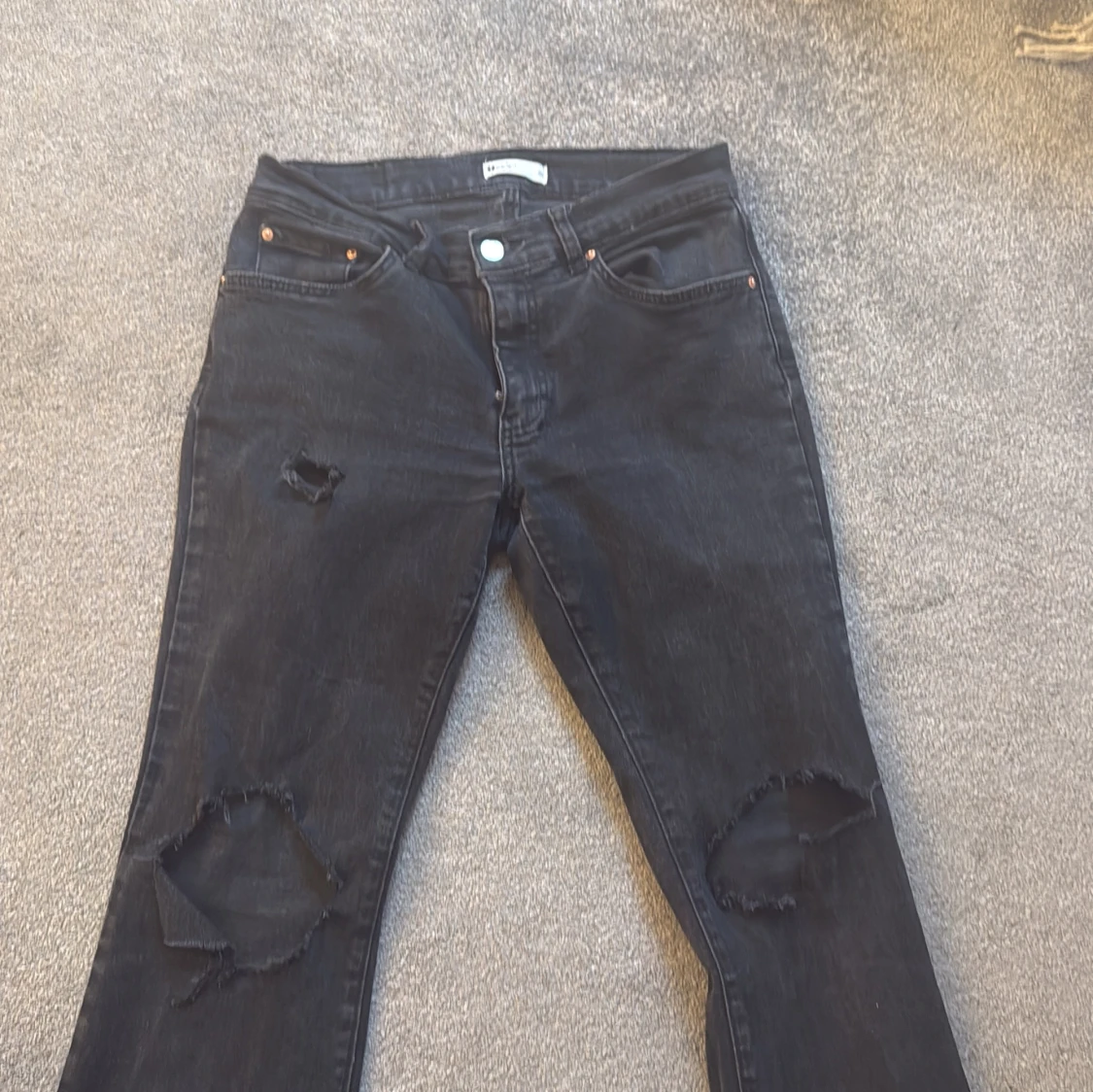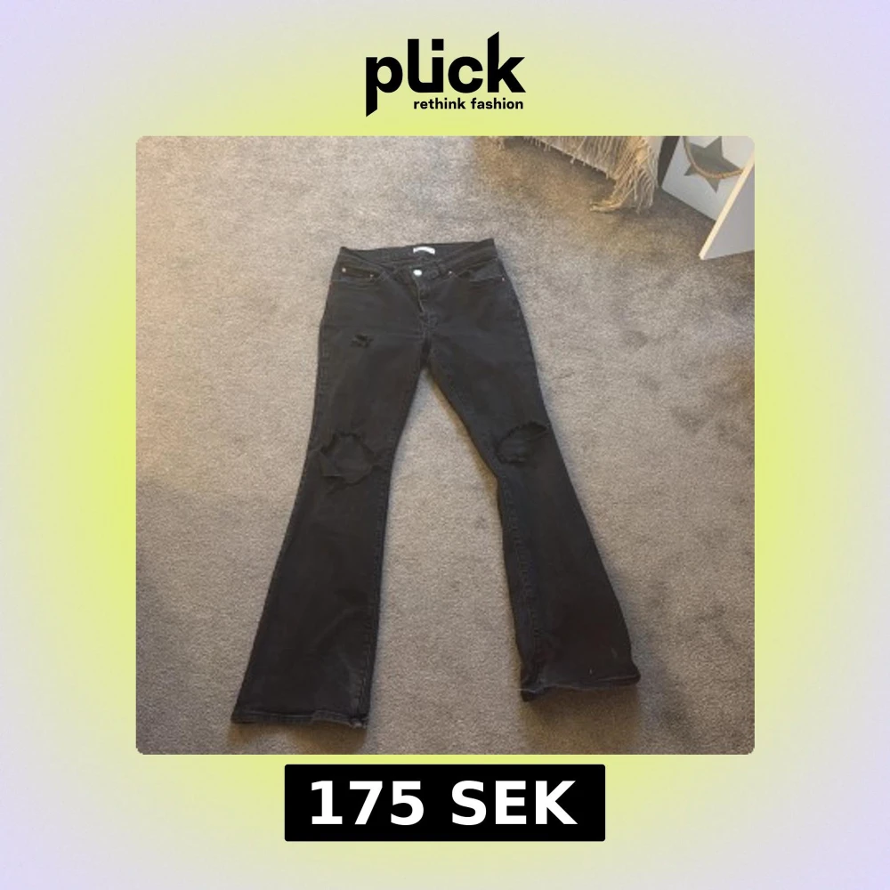 Snygga svarta bootcut jeans med coola slitningar på knäna. Hålen har jag klippt själv!