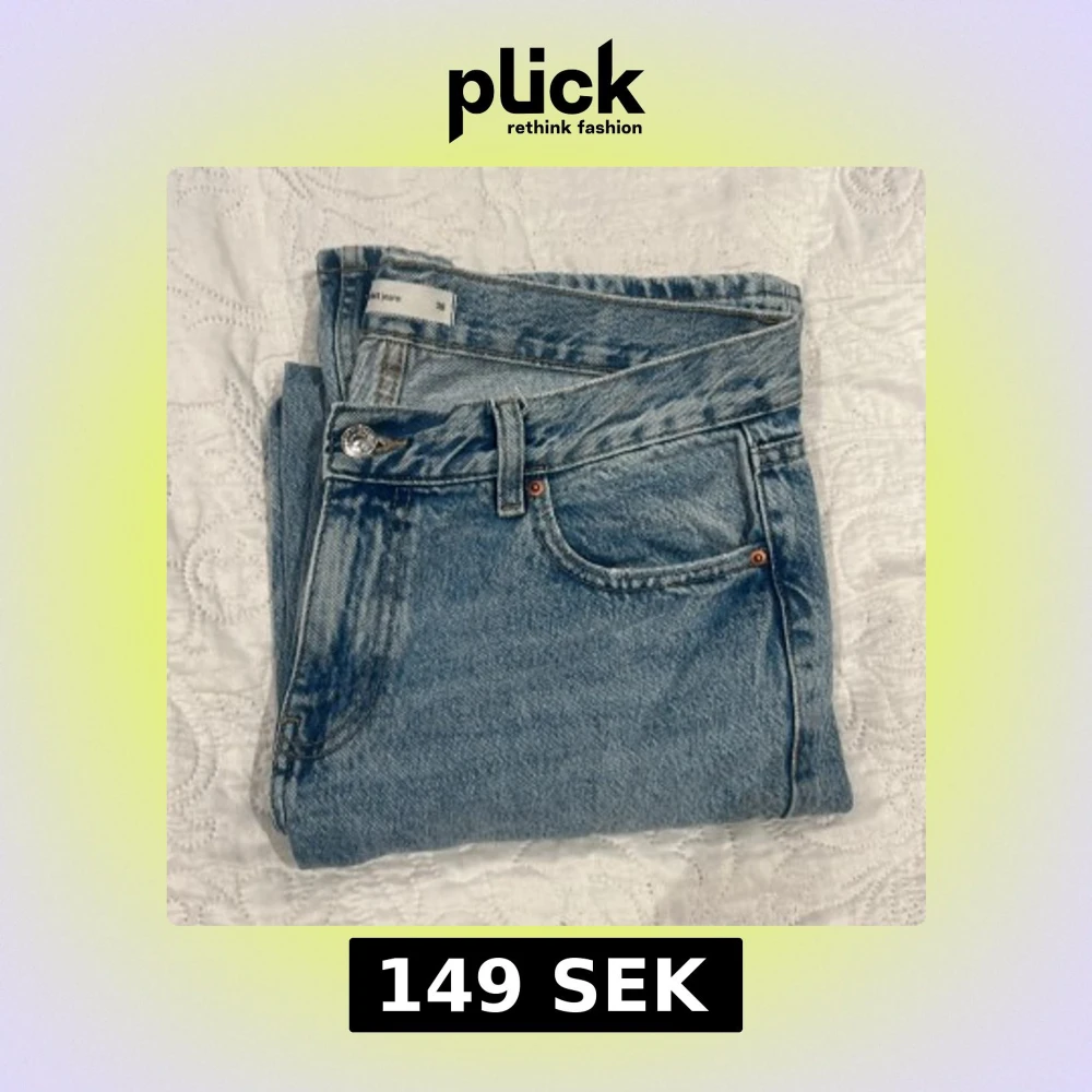 Säljer ett par jeans ifrån Gina tricot i storlek 38/S/M som jag använt max tre gånger då jag använt andra jeans mer så de har bara legat i garderoben. Köptes för 499 kr eller 599 kr men jag säljer de för enbart 149 kr då jag vill bli av med kläder snabbt