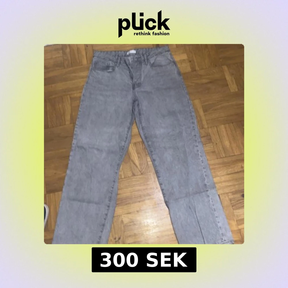 Säljer ett par grå jeans med låg midja från Ginatricot i storlek 38. De har en klassisk femficksdesign och knappar i gylfen. Den har endast används 2 gånger