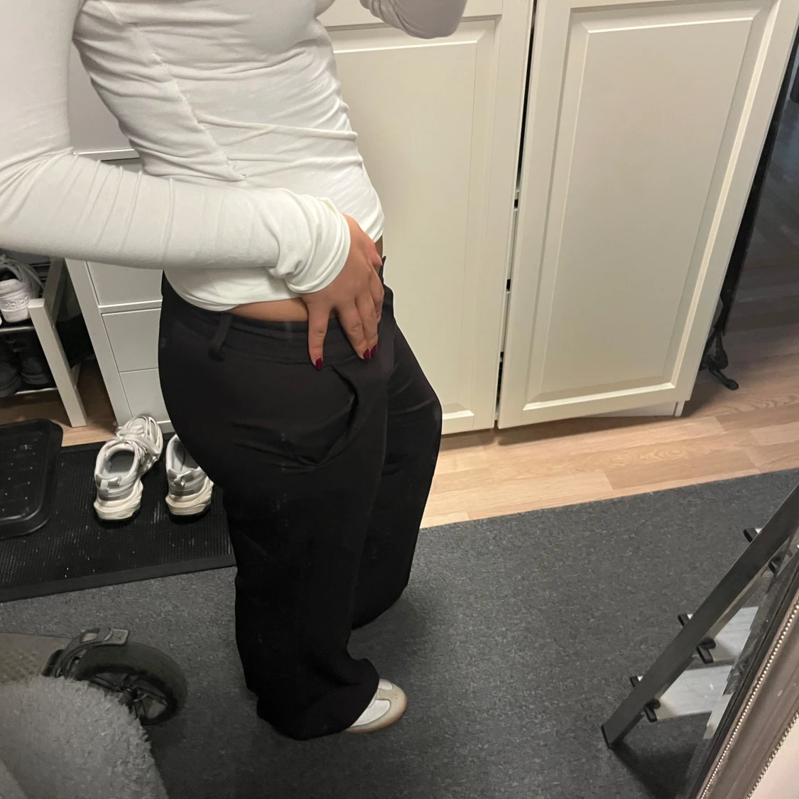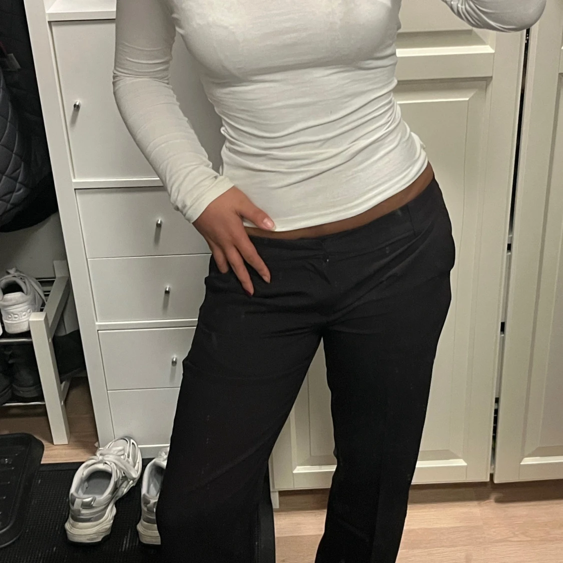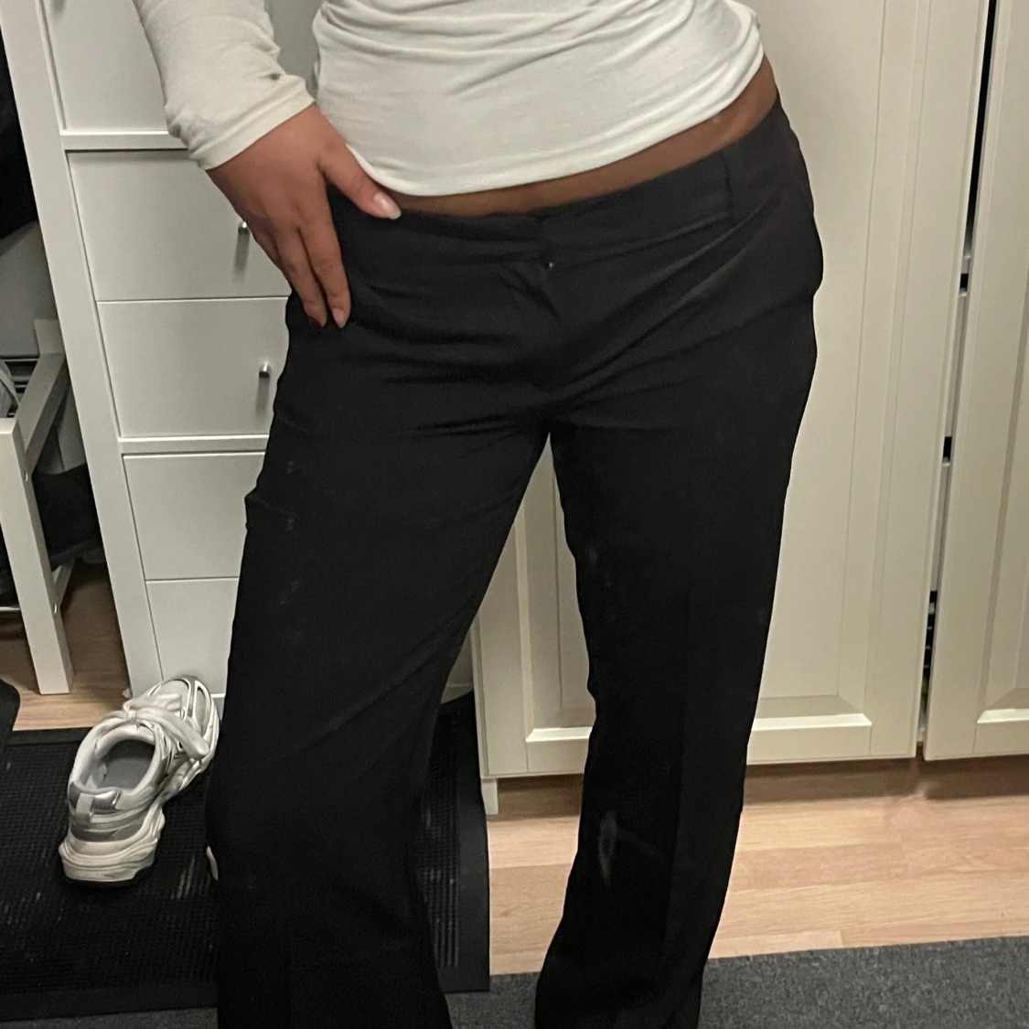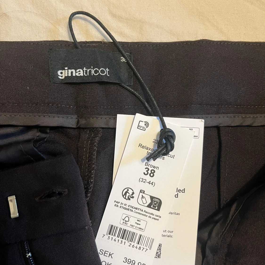Säljer ett par bruna kostymbyxor från Gina Tricot i relaxed fit. Byxorna har låg midja, raka ben och klassiska fickor. Perfekta för en clean och stilren look. Materialet är mjukt och skönt, passar dig som gillar en chill men ändå dressad vibe.