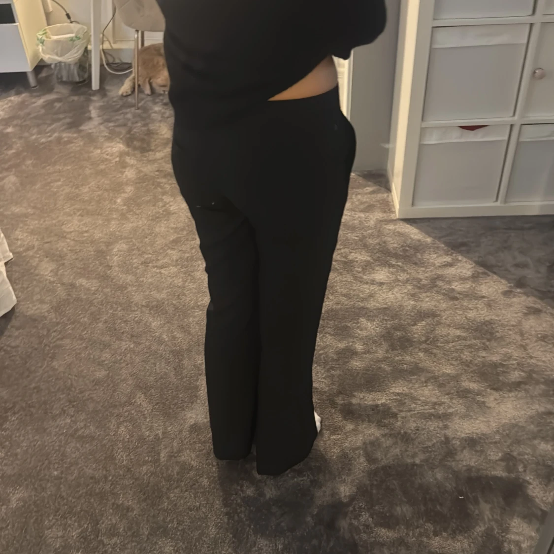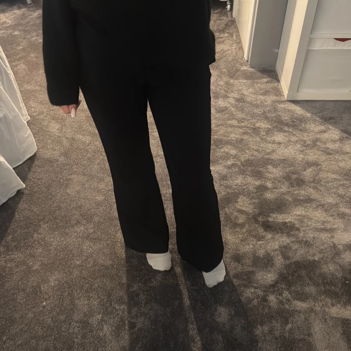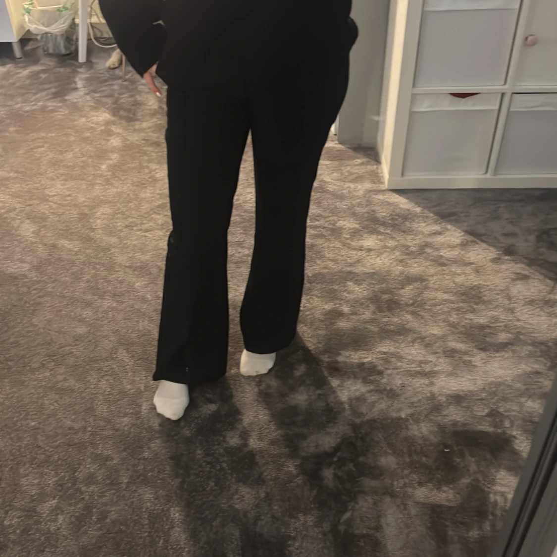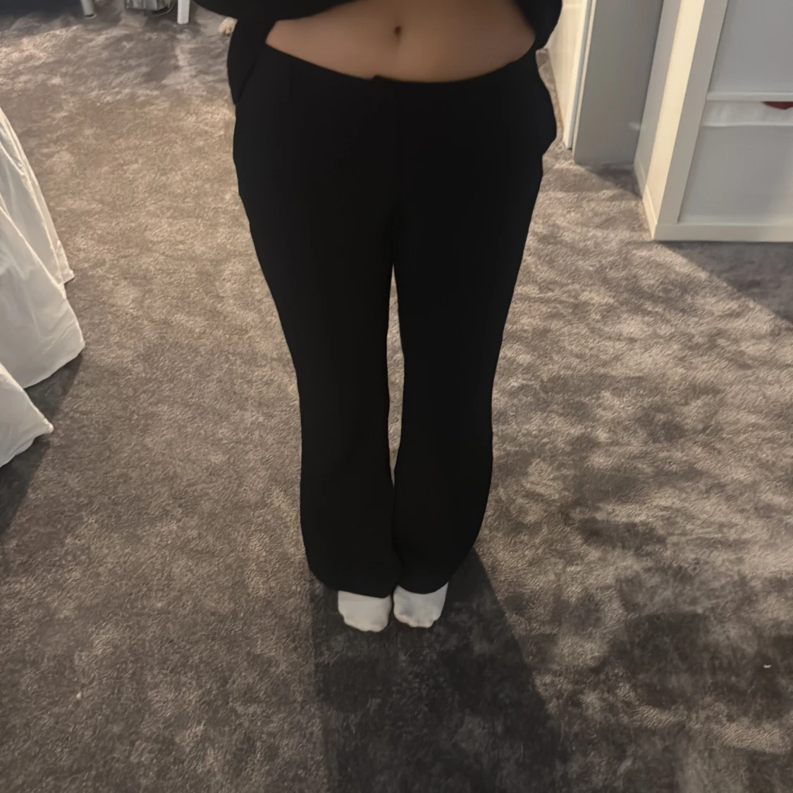 Säljer ett par svarta byxor med bootcut-modell och låg midja. Byxorna har en klassisk och stilren look med lätt utsvängda ben. Perfekta för dig som gillar en tidlös och snygg siluett. Materialet känns mjukt och följsamt.