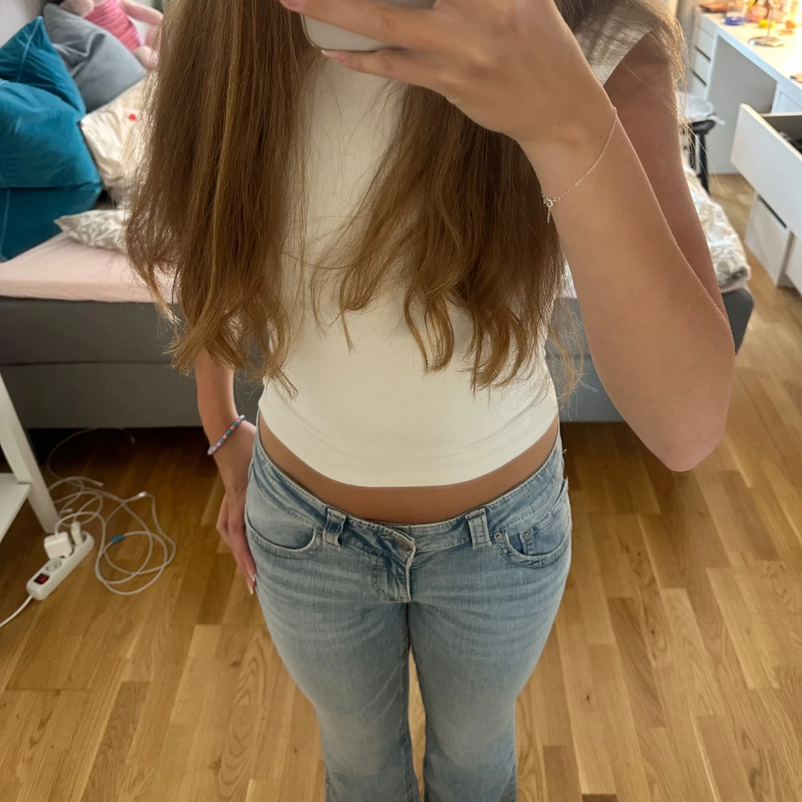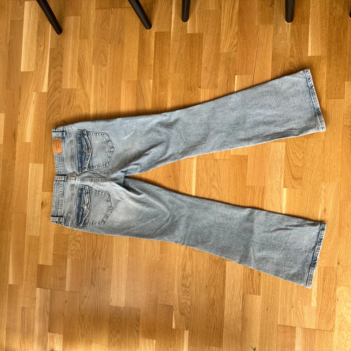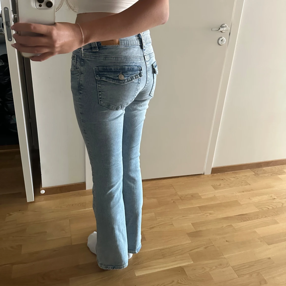 Säljer ett par ljusblå jeans med bootcut passform och snygga fickdetaljer bak. Jeansen har klassisk femficksdesign, normal midja och är tillverkade i mjukt denim. Perfekta för dig som gillar en avslappnad men ändå trendig look. Storlek 40, jag är 175 och tycker personligen att dom är lite för korta.