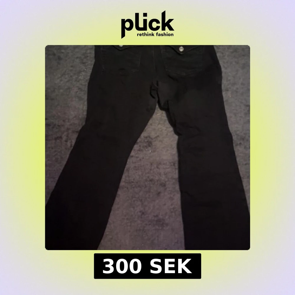 Svarta jeans med bootcut passform och snygga bakfickor med lock och knapp. Klassisk look som passar till många stilar. Jeansen har low wast och bootcut ben med lätt utsvängning nertill. Petite
