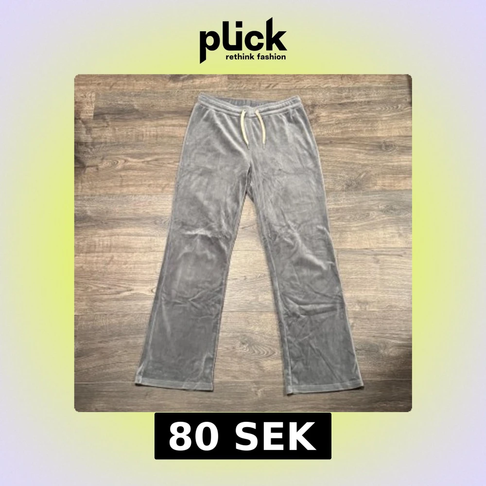 Cecilia Velour mjukisbyxor, grå, från Gina Tricot. Bandet som sitter i är från en beige kofta i samma serie. Storlek M, lite korta för mig som är ~173