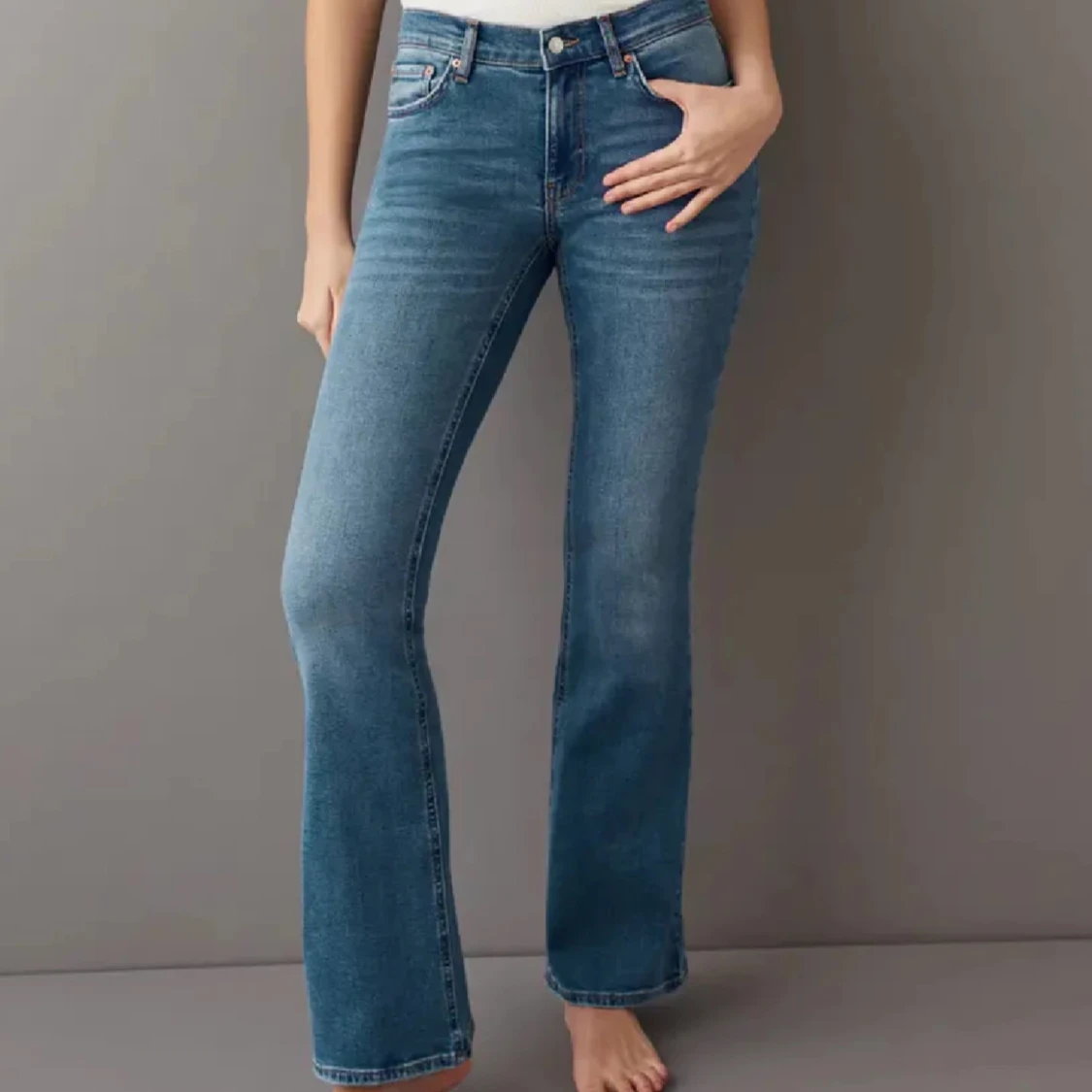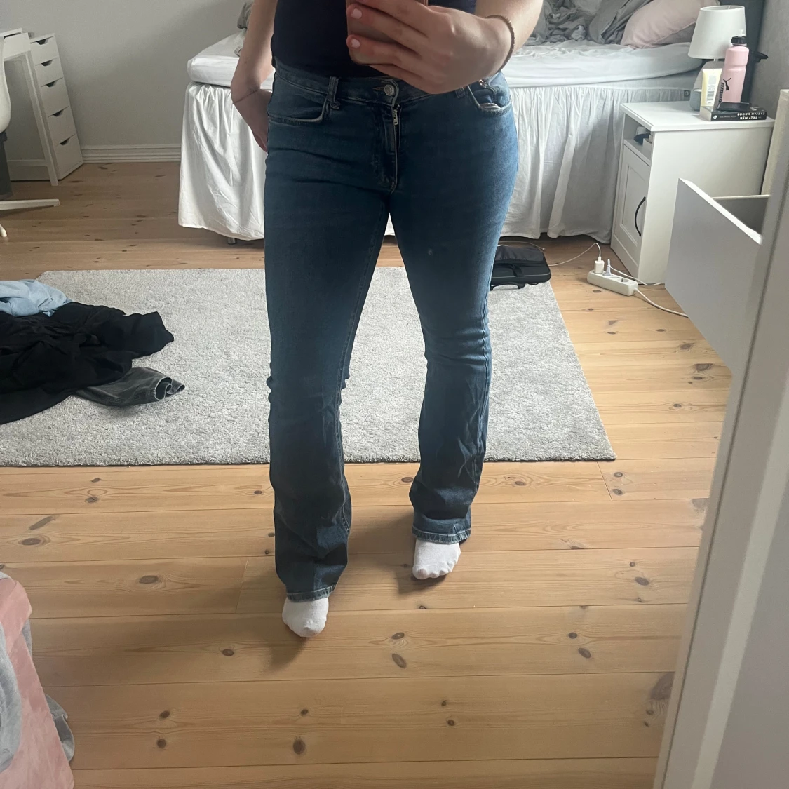 Lågmidjade jeans med en mellanblå tvätt, är i bra skick! 💓💓