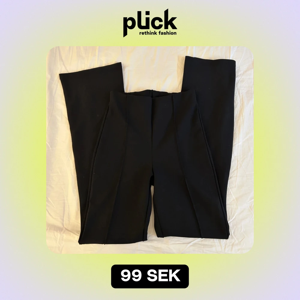 svarta kostym byxor från Gina Tricot i storlek XS. Byxorna är höga med boot cut och ribbad kant detalj.