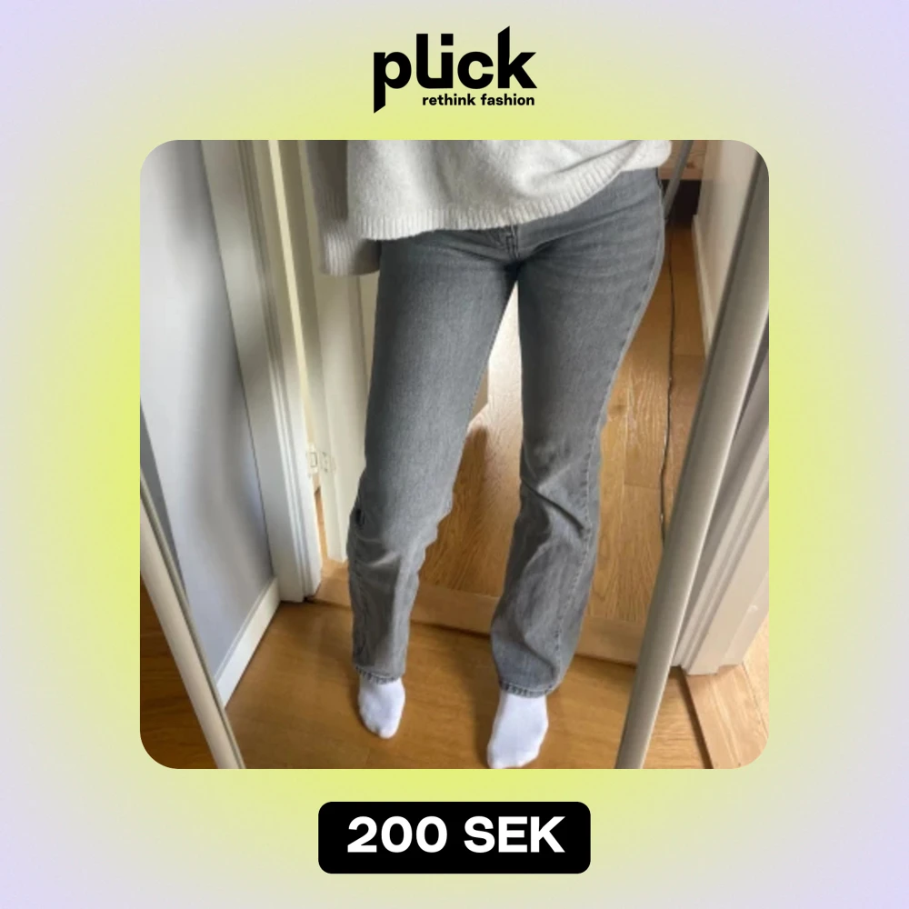Gråa jeans från Gina Tricot i modellen ”Full length flare”💗 I bra skick o nypris 500kr🙌