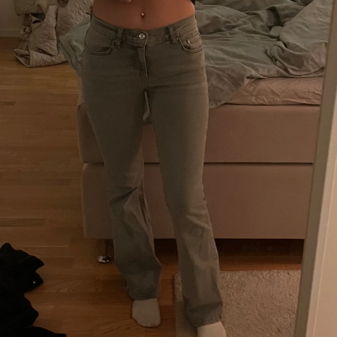 Low waist bootcut jeans från Ginatricot storlek 34, jag är ca 169 och de går precis ner till marken på mig, inga defekter, använda 1 gång, säljer för 300kr exklusive frakt (köpta för 500kr)