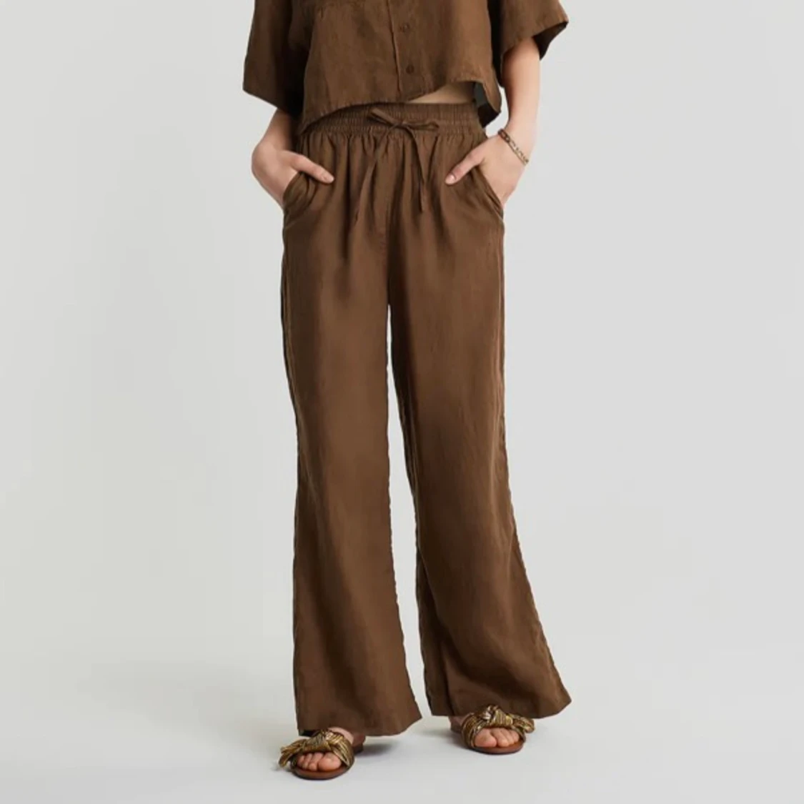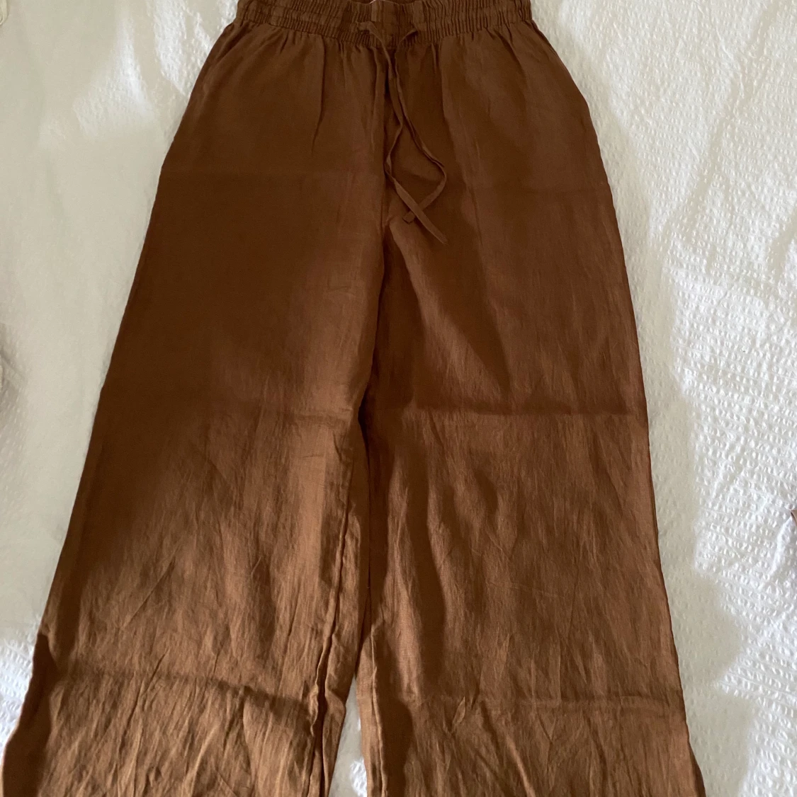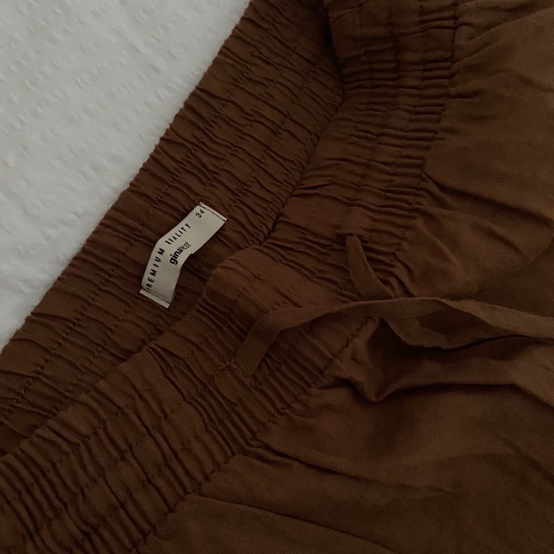Bruna linnebyxa från Gina Tricot som är oanvända. Storlek 34 men upplever de ganska stora så passar nog 36 med.
