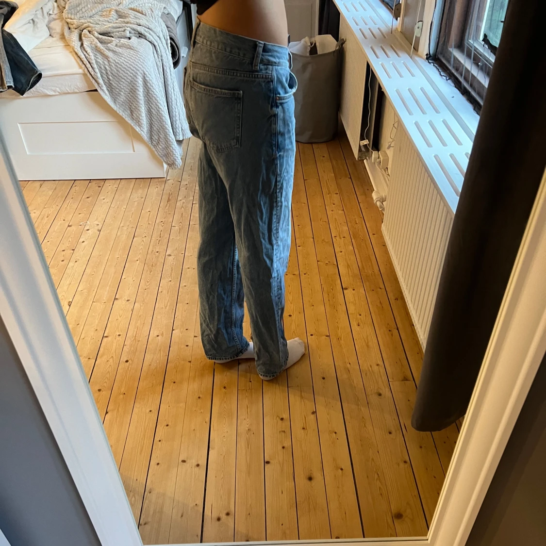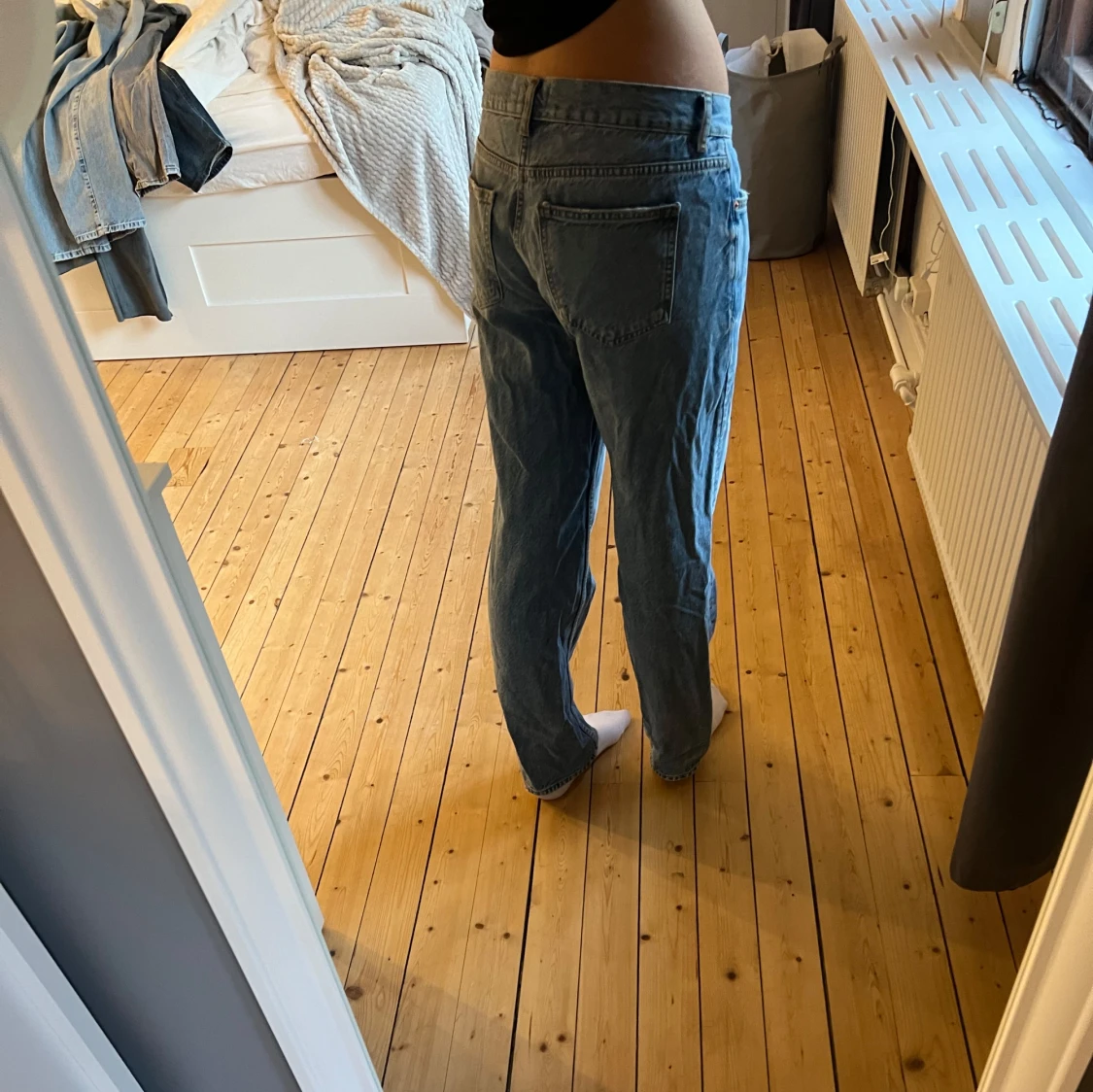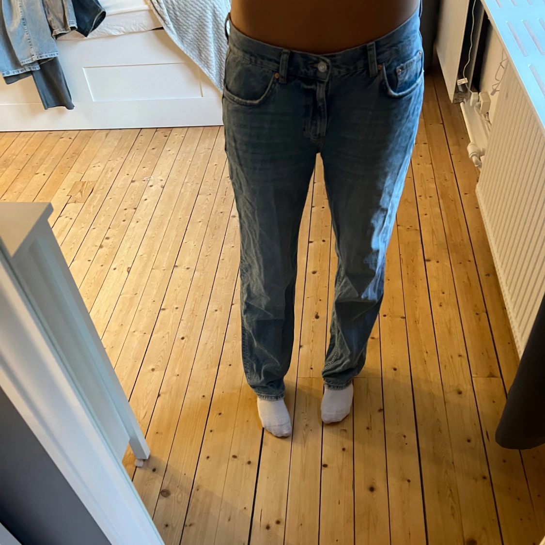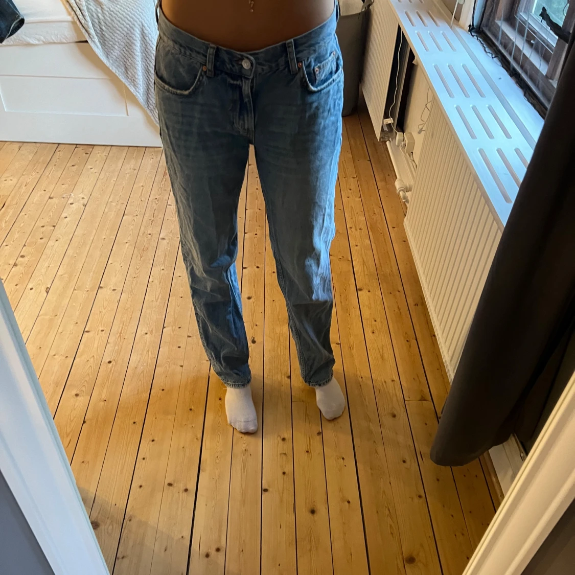 Ett par Lågmidjade straight jeans från Gina Tricot i storlek 38.