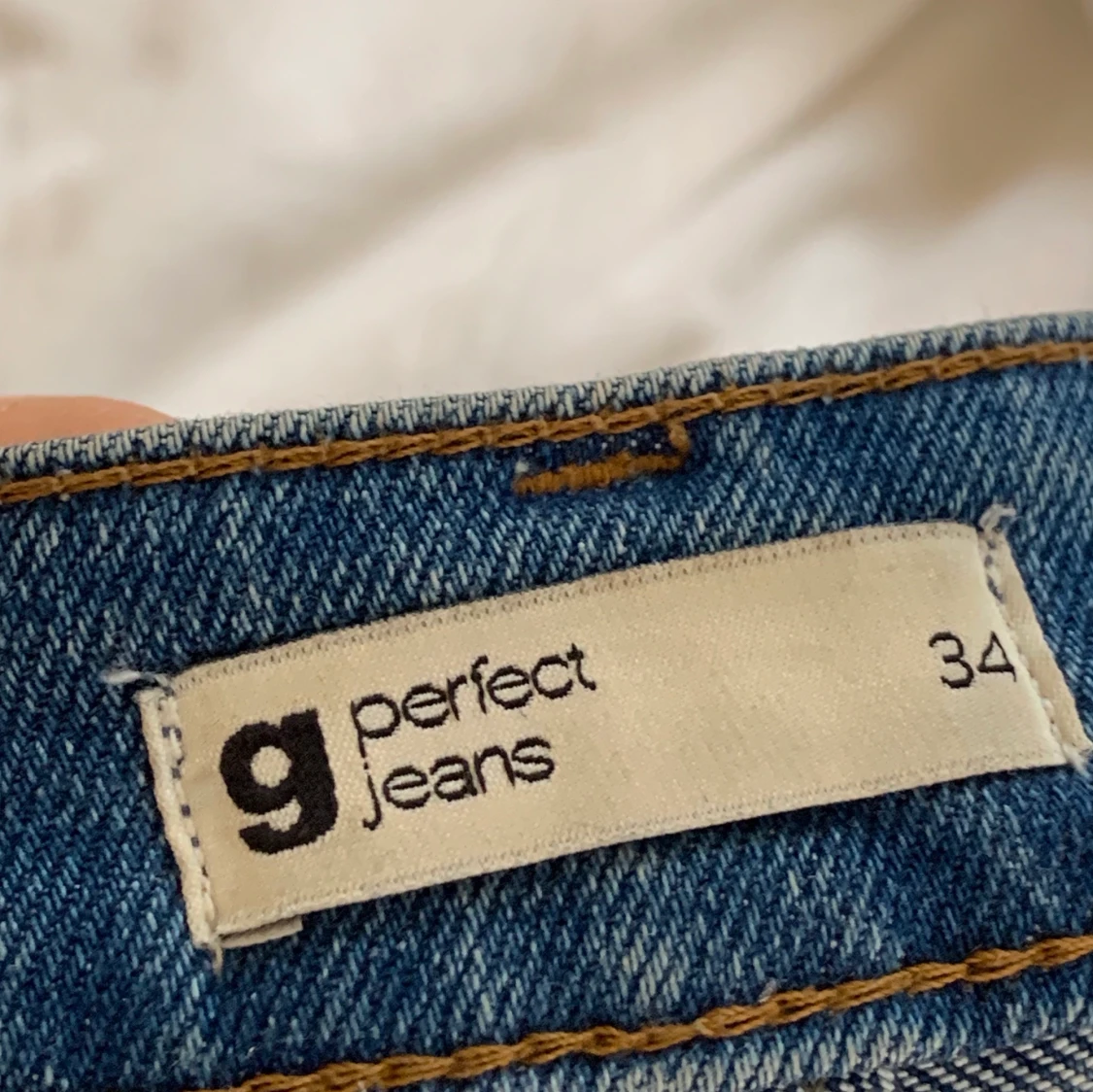 Blå högmidjade jeans från Gina Tricot i stlk 34 med hål. Jättesköna och stetchiga så de formar sig fint efter kroppen. Fraktar eller möts upp i gbg