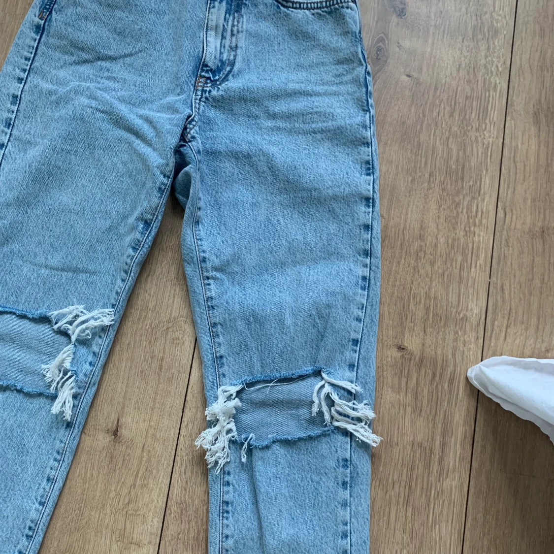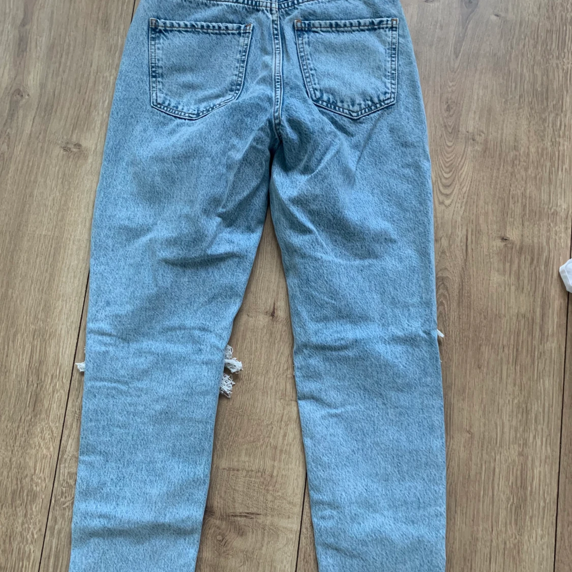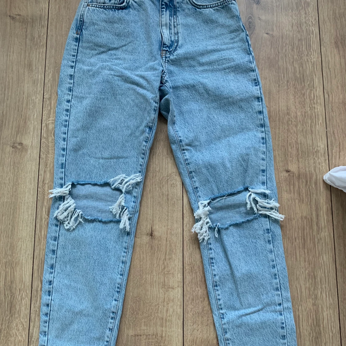 Säljer dessa jeans ifrån Gina tricot med hål på, storlek 34❣️ De är använda ett fåtal gånger. Jag säljer dem för 100kr!
