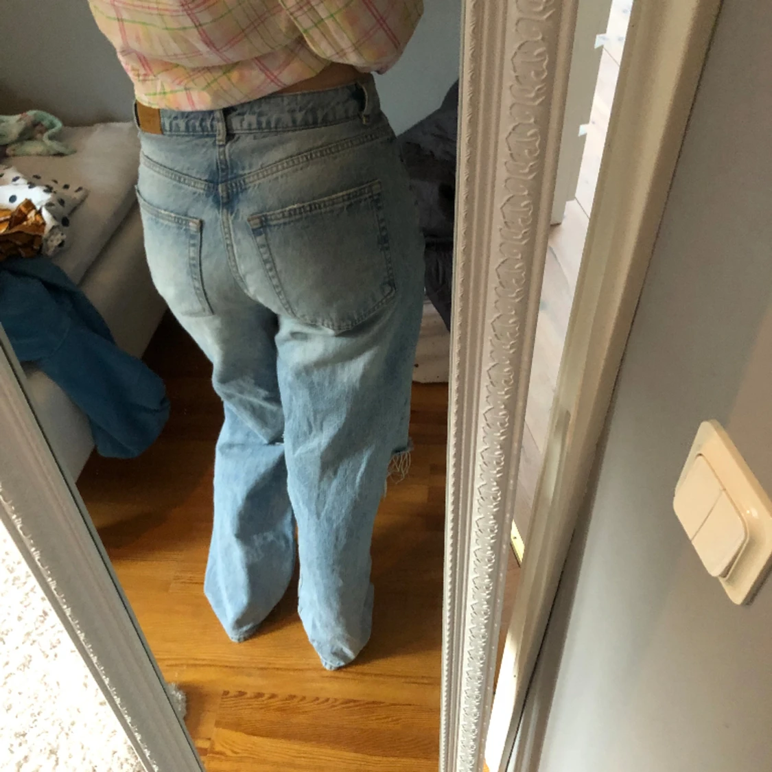 Är en storlek för stora för mig, så på bilden sitter dom inte perfekt. Inte använts supermycket så fortfrande väldigt bra skick!
