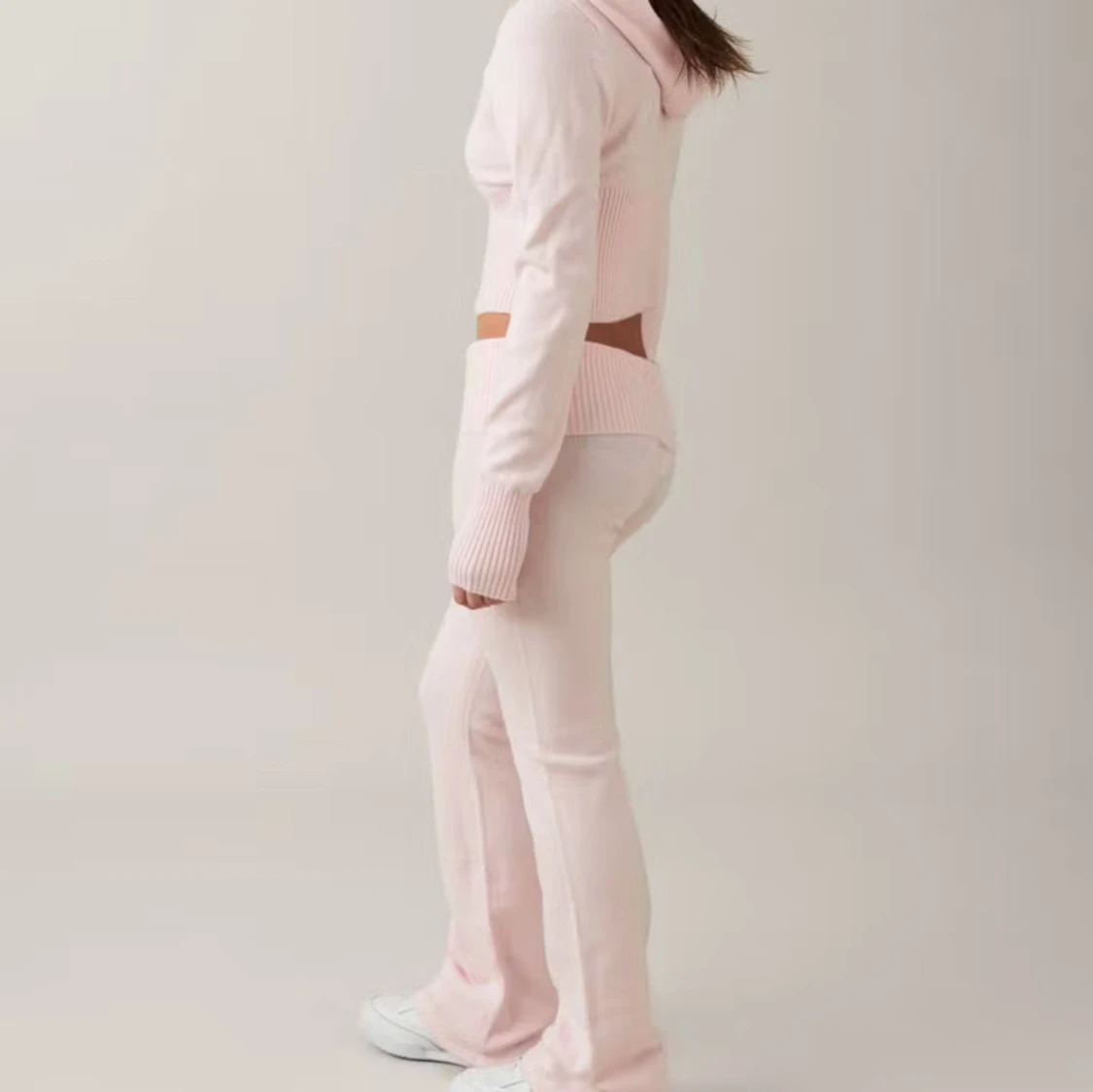 Ett par söta rosa stickade yoga pants från Gina tricot! De är i skönt material och Lågmidjade. Säljer även matchande yoga hood! Kontakta mig för egna bilder / frågor🩷