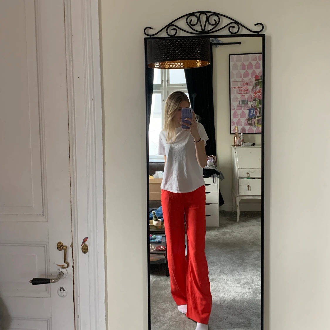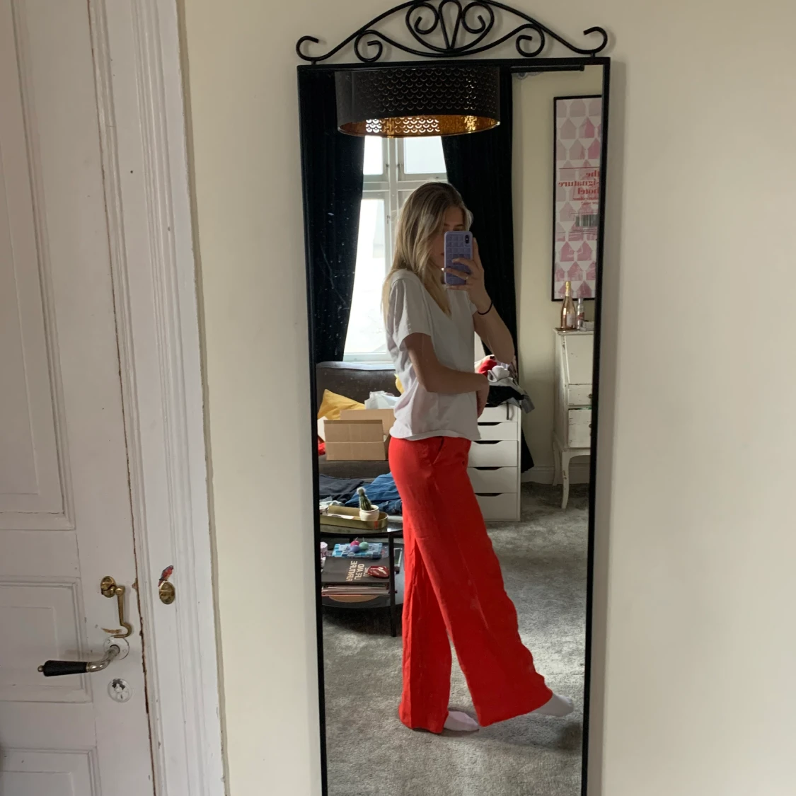 Byxorna upplevs oranga på bilderna, men de är rödare i värkligheten. Super bekväma o knappt andvända ! Jag sydde ner dem men man kan lätt du upp den💗 Fler bilder finns💗