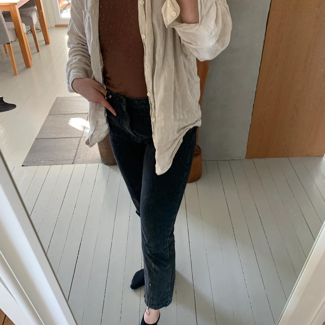 Svarta jeans i stolek S. Super fina nu på sommaren då de är en kortare modell (jag är 173). Tvätten på dem gör att de är något gråa i tonen🙌🏻 . Säljer då jag växt ur dem:/