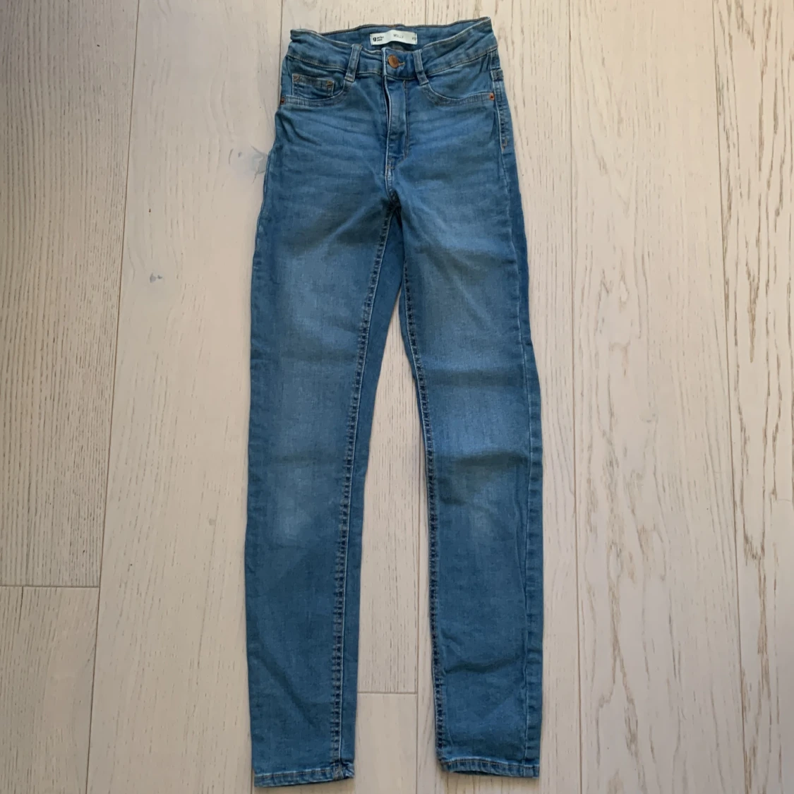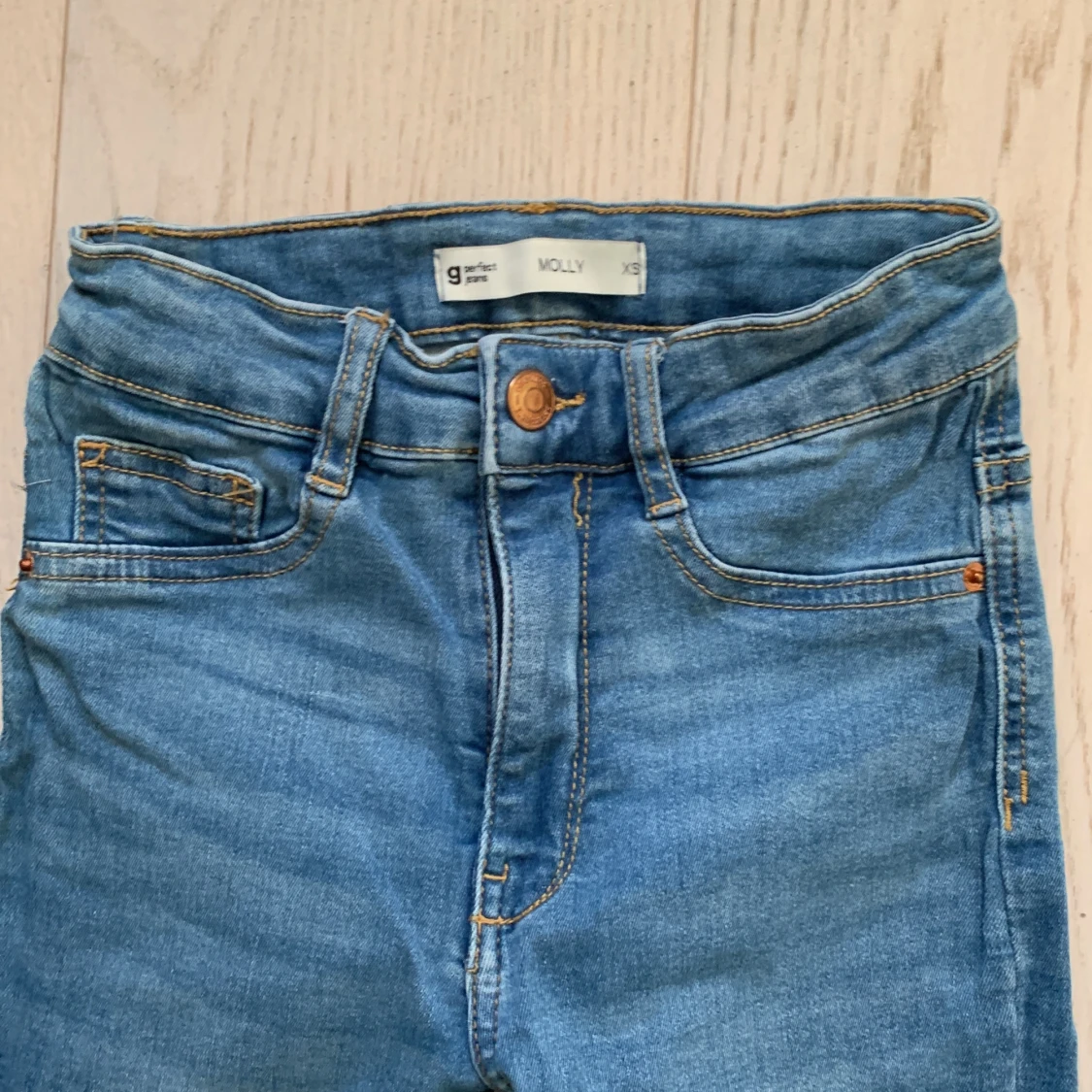 Jeansen är nästan aldrig använda, tvättade kanske 2 gånger. De är från Gina Tricot model Molly storlek XS. Modellen är skinny. Skriv vid fler bilder eller information!💗