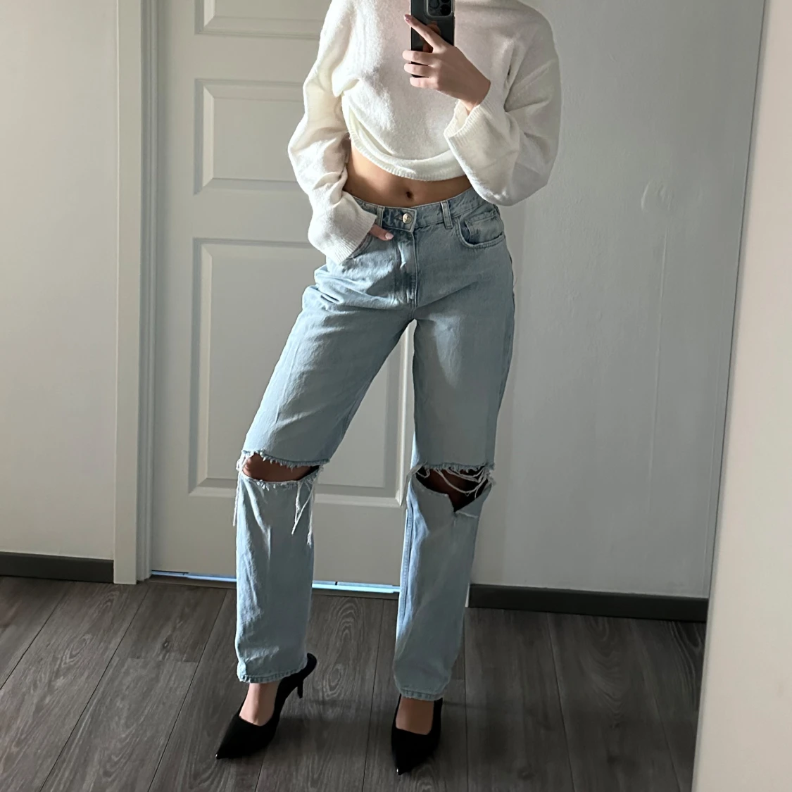 Blå straight leg jeans i jättebra skick, använd 2-3 ggr 💕 Passar 36-38