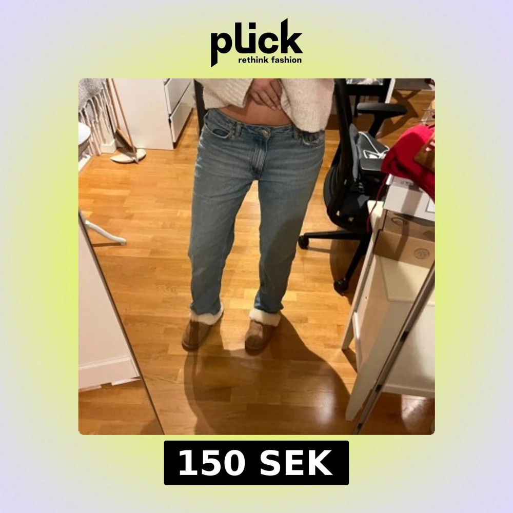 Snygga blå jeans med en klassisk design. Low waist straight leg ifrån Gina tricot i 38! Knappt använda. I mellanblå färgen