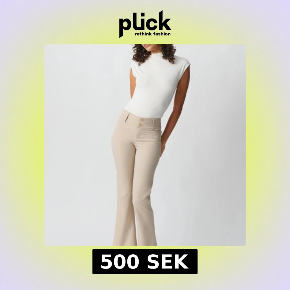 Snygga beige kostymbyxor med hög midja och bootcut-stil. Byxorna har dekorativa knappar framtill och praktiska fickor bak, aldrig använt💕