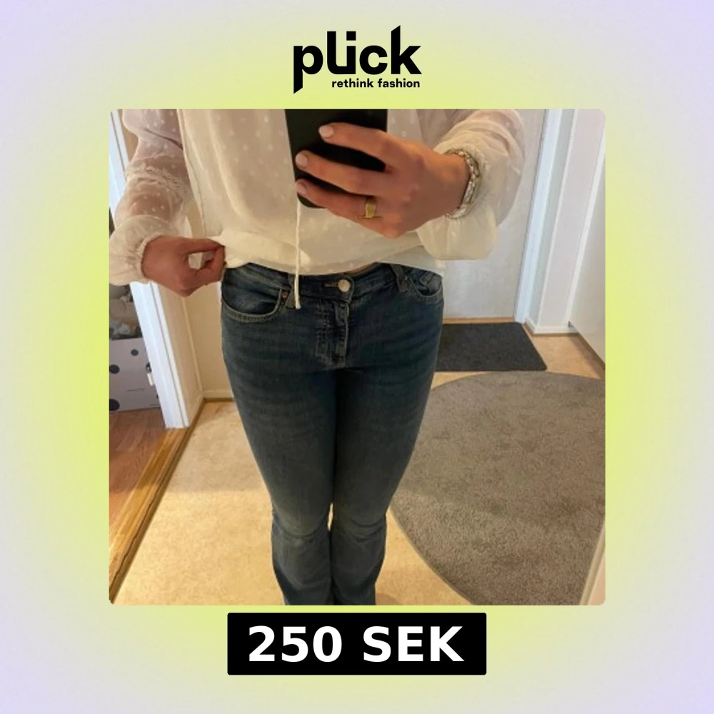 Jättefina lowwaist bootcut jeans i mellanblå färg, jättefint skick🤍Nypris 500
