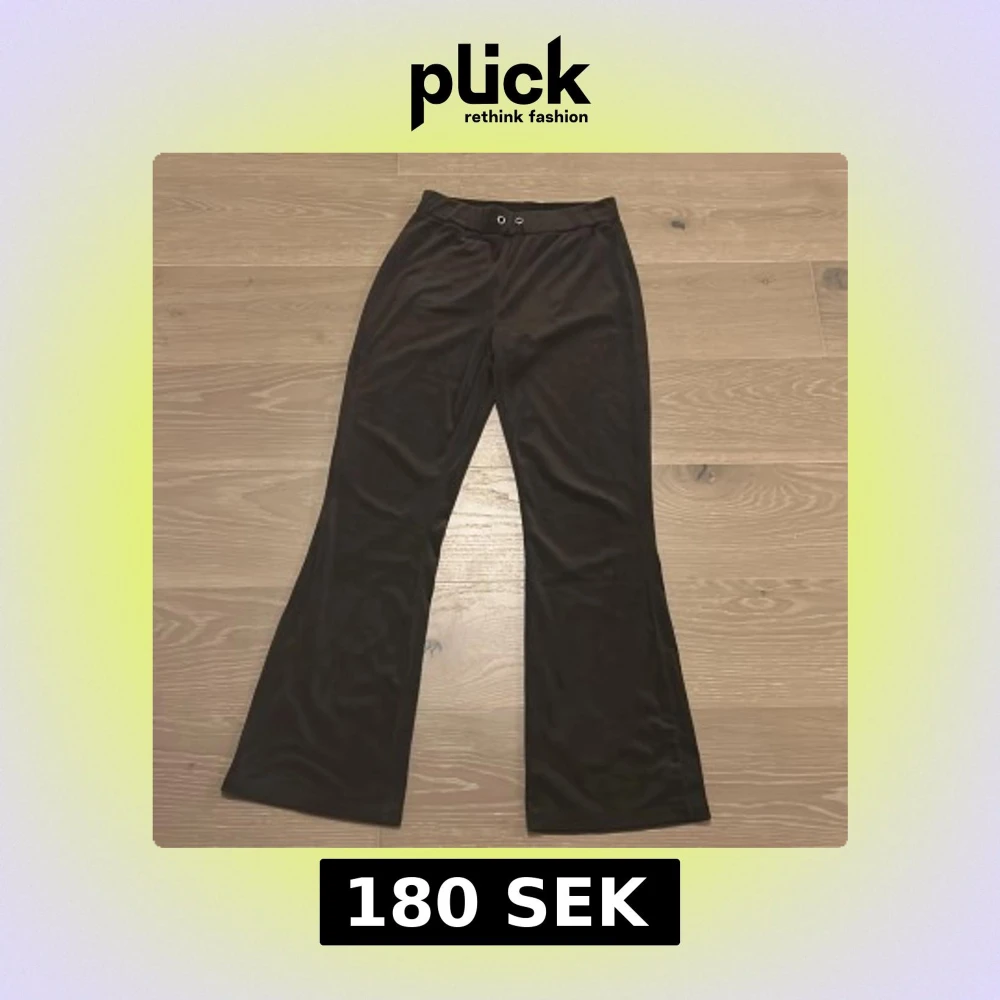 Mörkbruna bootcut byxor från Gina Tricot i mjukt och stretchigt material. Saknar snöre.