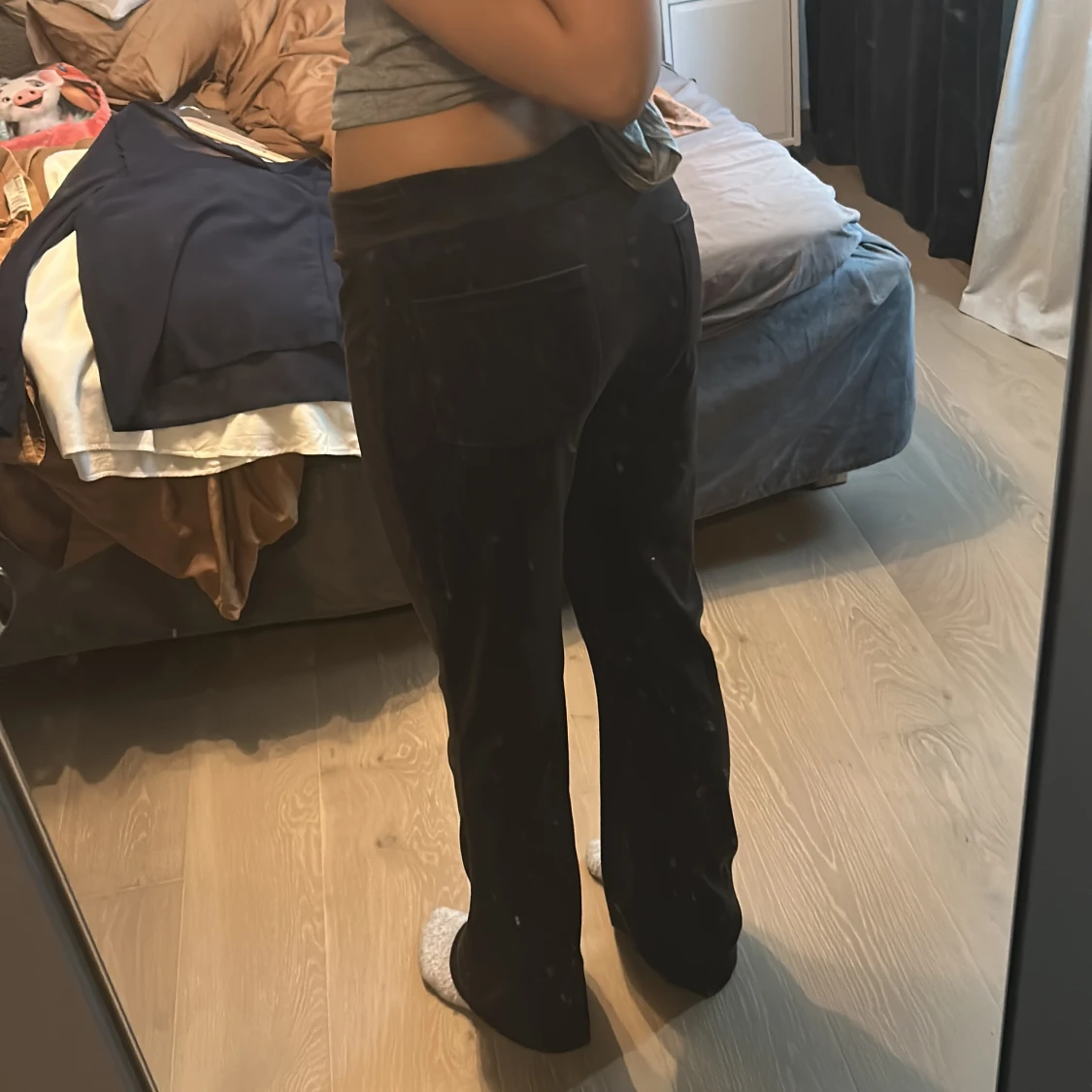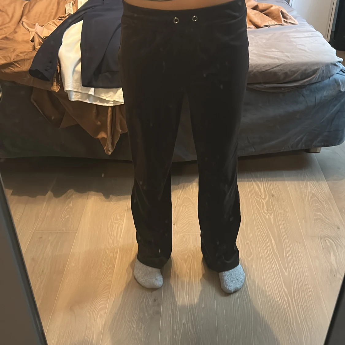 Mörk bruna bootcut mjukis byxor från Gina Tricot
