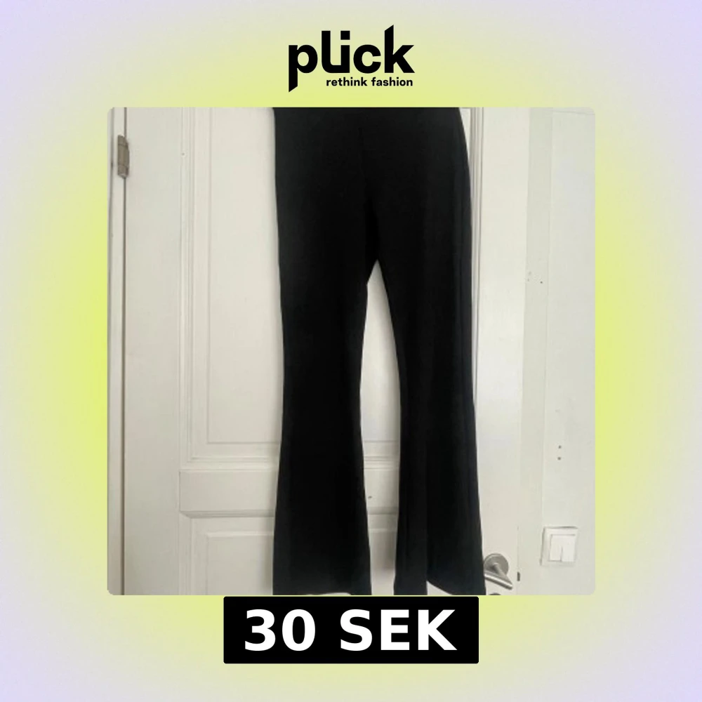 Svarta bootcut som är högmidjade från Gina Tricot, basically basics-kollektionen. Byxorna har hög midja och är i ett stretchigt, mjukt material som sitter skönt. Perfekta för dig som gillar en klassisk och stilren look med lite utsvängda ben.