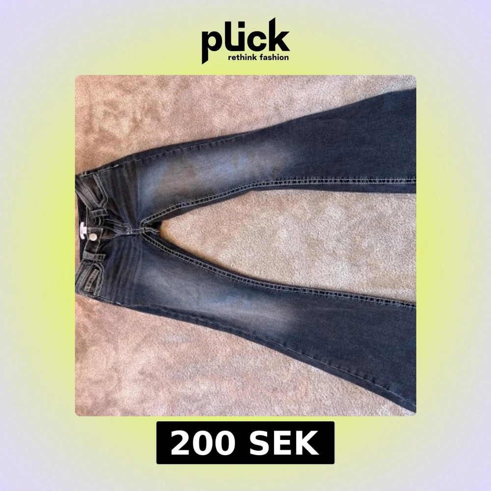 Mörkgrå bootcut jeans från Gina Tricot i storlek S. Snygga slitningar framtill och bakfickor med dekorativa nitar och kontrastsömmar. Klassisk femficksmodell med dragkedja och knapp. Perfekt för dig som gillar retrovibbar och markerade detaljer.
