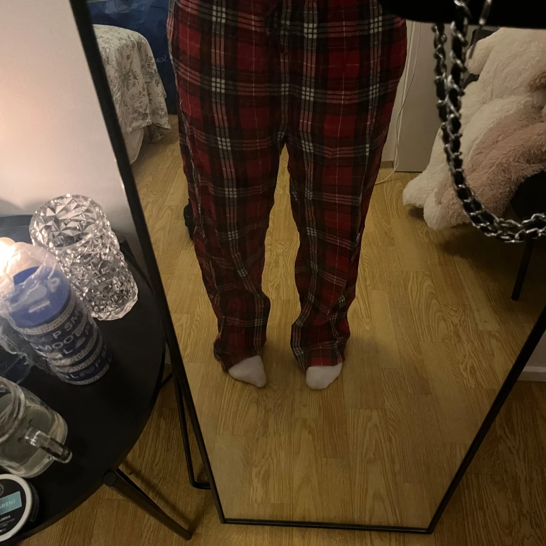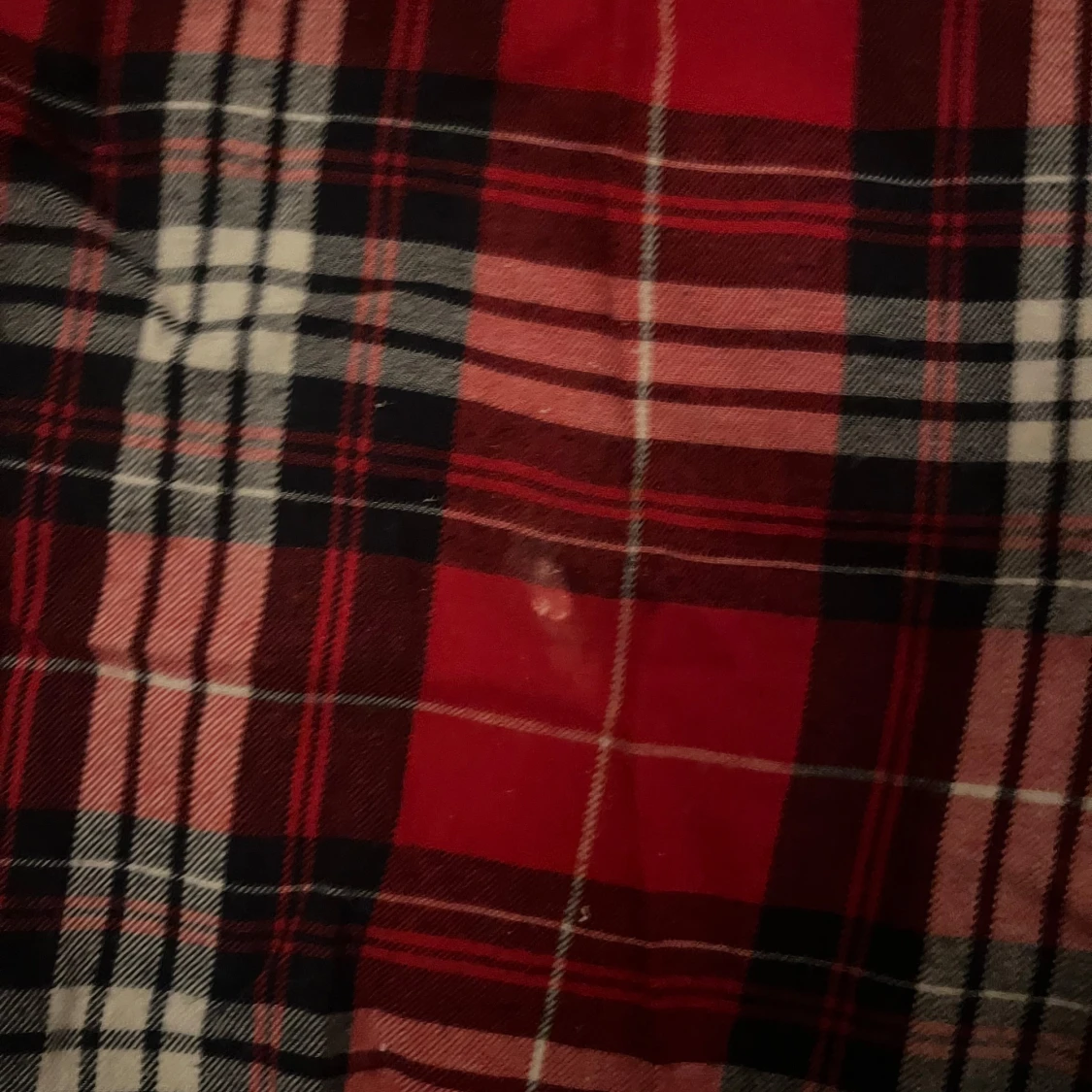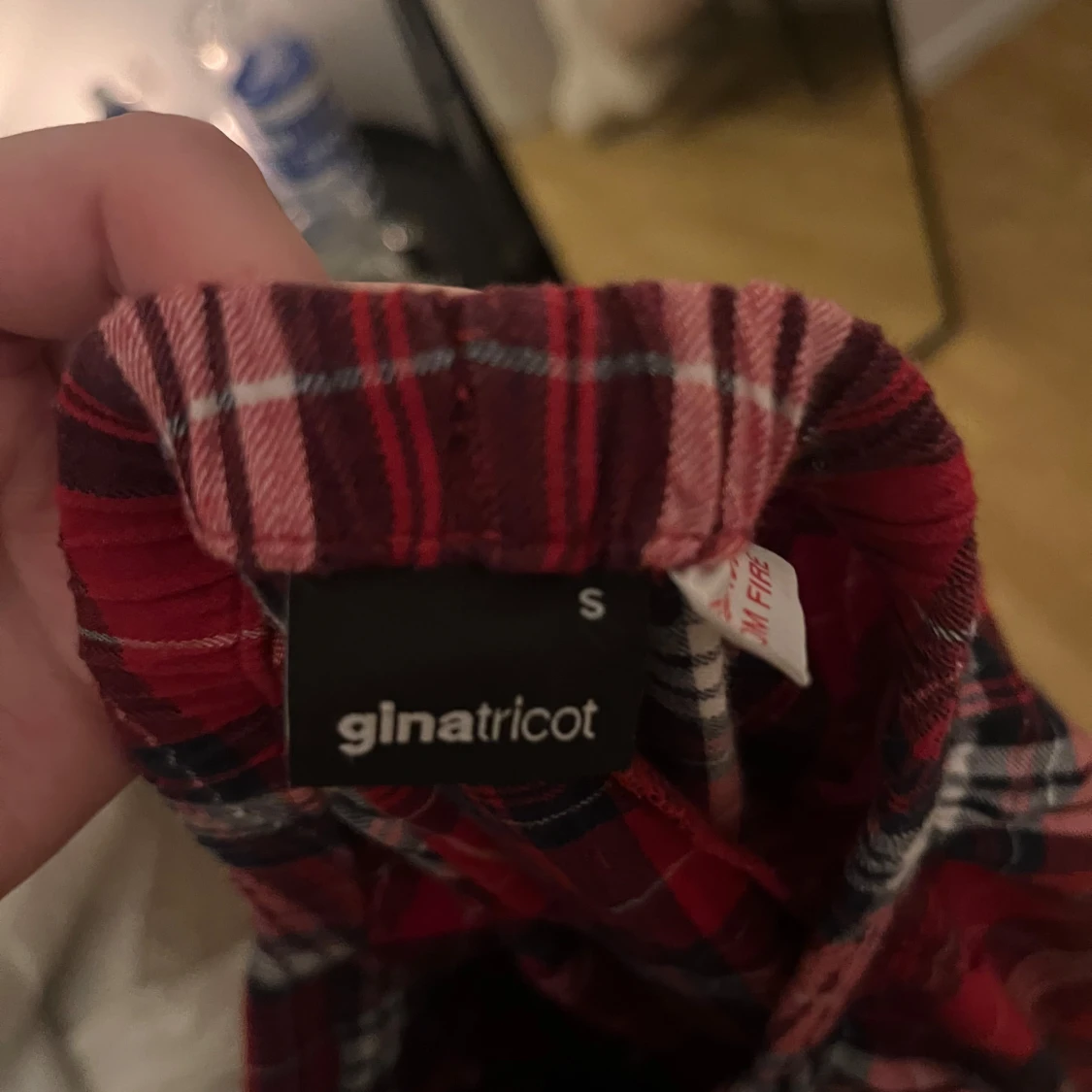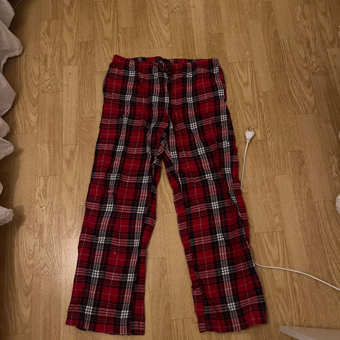 Pyjamasbyxor från Gina Tricot i mjukt bomullstyg. Byxorna har snörning i midjan och ett avslappnat, rakt snitt. Perfekta för chill dagar hemma eller som mysbyxor. Klassisk rutig design i rött, svart och vitt. En liten fläck som inte syns knappt