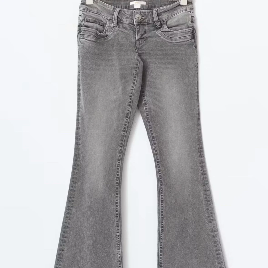 Säljer dom här super fina gråa bootcut jeans med låg midja. Jeansen är helt nya och har endast testats, så lappen sitter kvar. Jeansen är köpta på Gina Tricot men passade tyvärr inte så därav säljer jag dom. Priset går att diskutera!Bilderna är lånade så kom privat för fler bilder eller frågor!💕💕