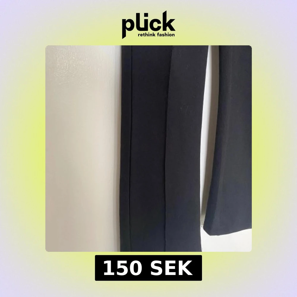 Kostymliknande byxor från Gina Tricot med ett väldigt stretchiga material vilket gör dom väldigt bekväma. Utsvängda vid benen. De har en rand över benet på framsidan. Har lite skananker, en ”mask” på ena benet. Se bild. Syns inte så mycket om man inte kollar nära.