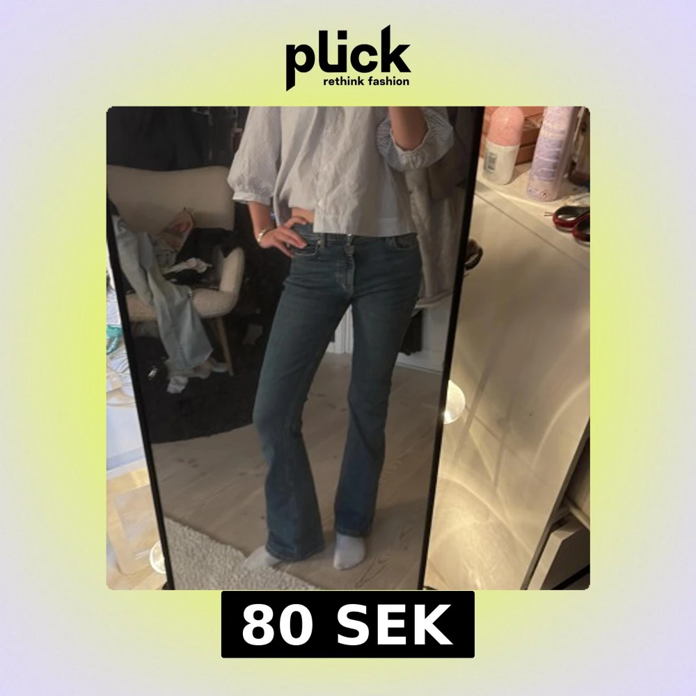 Snygga blå jeans med bootcut-modell och hög midja. Jeansen har klassisk femficksdesign, dragkedja och knapp framtill. Perfekta för dig som gillar en tidlös och trendig look. Materialet är slitstarkt denim i bomull.