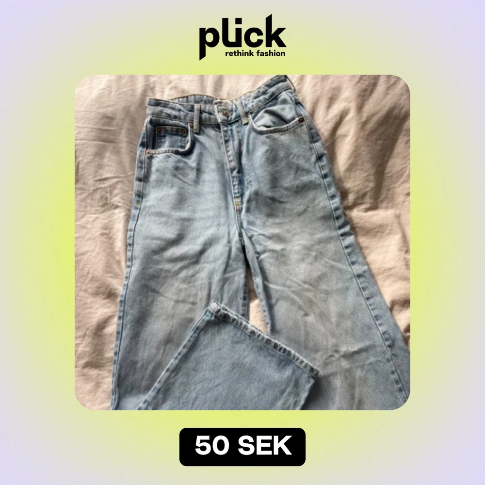 Blåa baggy high waist jeans, använda men i bra skick. Strl 34, säljes för 50kr