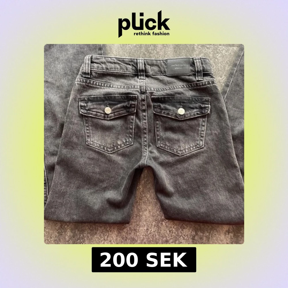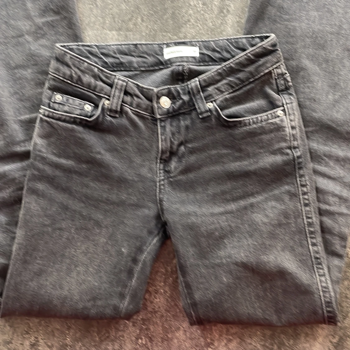 Säljer ett par grå jeans från Gina med klassisk femficksdesign och raka ben. Byxorna har silverfärgade knappar och detaljer samt normal passform. Perfekta till vardags för en avslappnad stil.