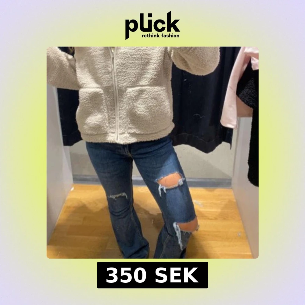 Mörkblåa, från gina Tricot, midjemått ca 30 rakt över men stretchiga, innerbenslängden ca 78