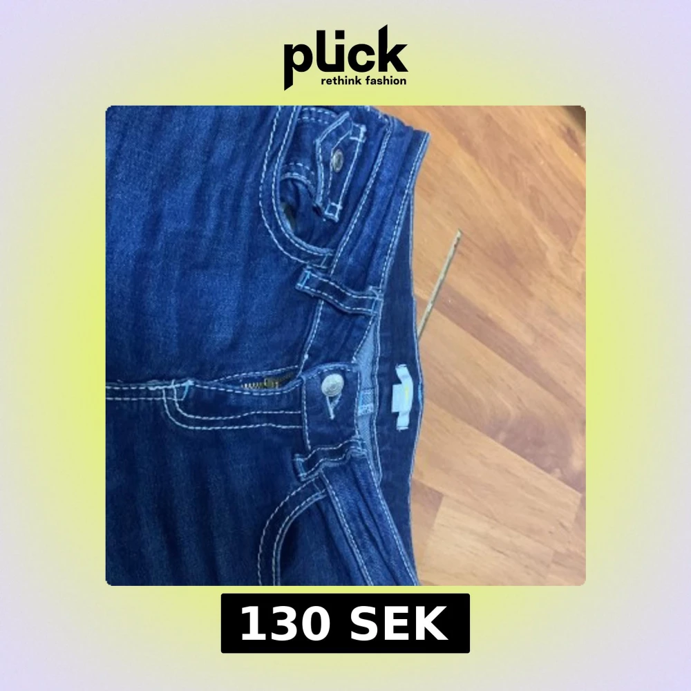 Säljer ett par mörkblå jeansshorts med tydliga vita kontrastsömmar och klassiska fickor fram och bak. Byxorna har knapp- och dragkedjestängning samt dekorativa detaljer på bakfickorna. Perfekta för en avslappnad stil.