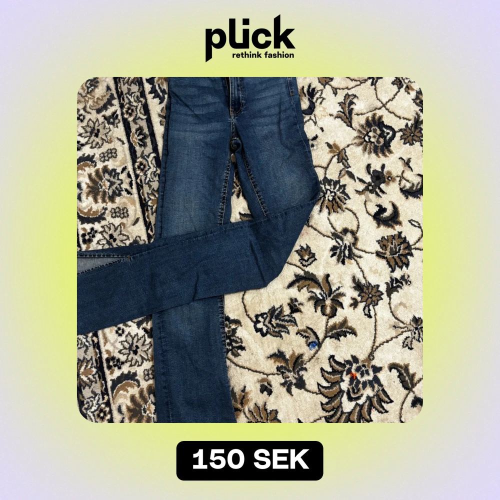 Säljer ett par snygga blå jeans från Gina i storlek XS. De är utsvängda passform och är i bra skick. Jeansen har en dragkedja och knappar framtill samt slitsdetaljer vid bensluten. Perfekta för både vardag och fest! Aldrig använt