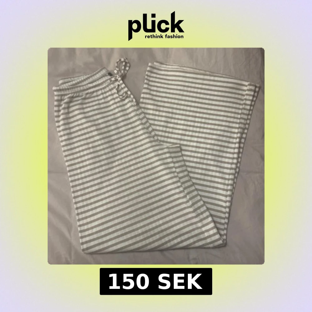 Köptes från Gina Tricot i våras, och är i storlek XS men passar även en S. Jag är 163 cm och dessa går enda ner till hälarna på mig. De är lite noppriga. Hör gärna av dig vid frågor🤎