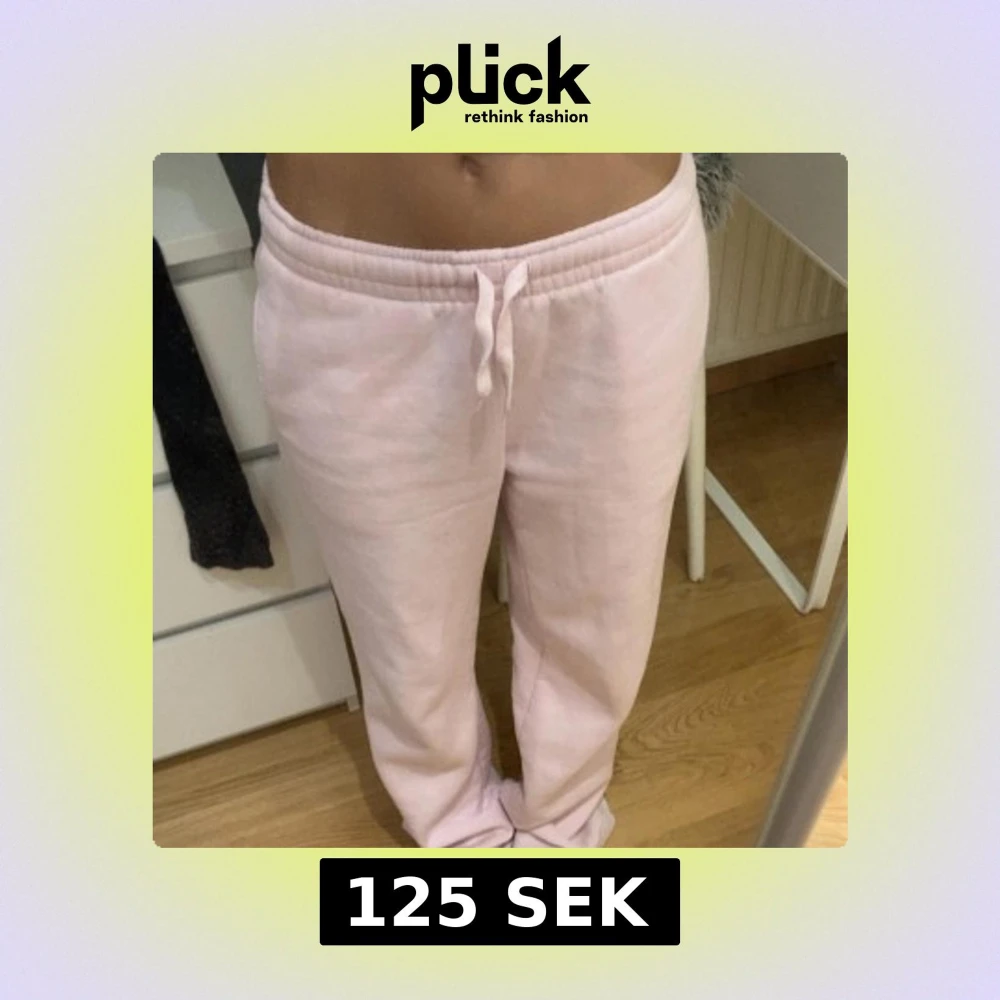 Säljer ett par ljusrosa mjukisbyxor med rak passform och resår i midjan. Byxorna har snörning framtill och är gjorda i mjukt bomullsmaterial. Perfekta för chill dagar hemma eller när du vill vara extra bekväm.