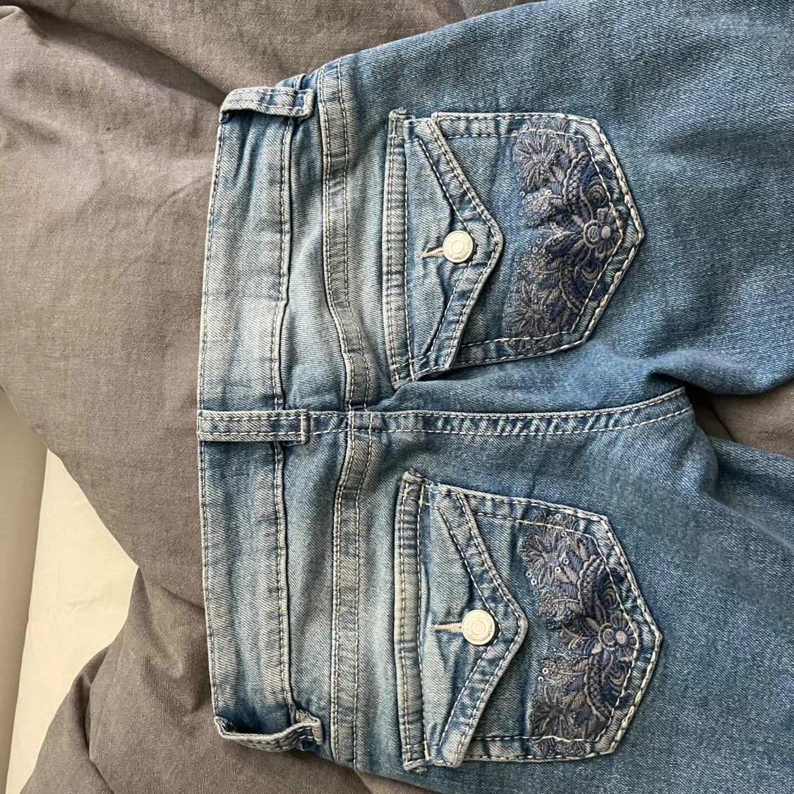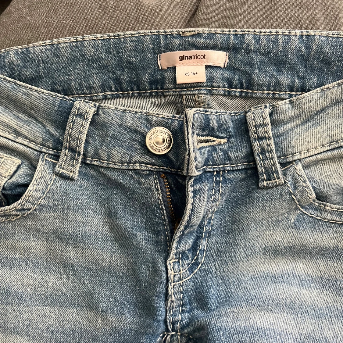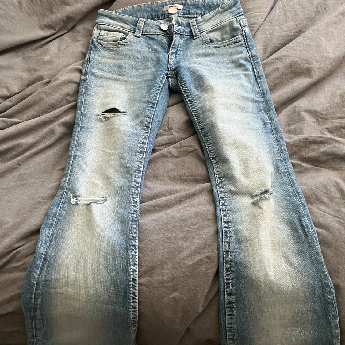 Jeansen är använda en gång ochse från Gina Tricot och är i storlek xs. De har hål där fram och fina fickor! Fri frakt