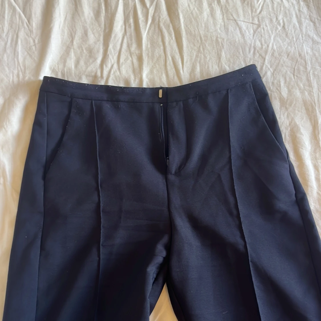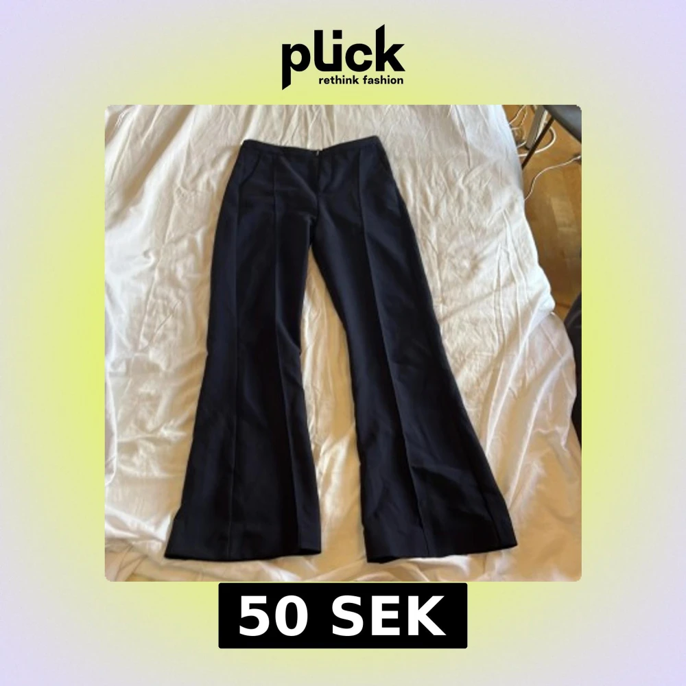 Snygga svarta kostymbyxor med vida ben och pressveck. Byxorna har hög midja och stängs med dragkedja fram. Perfekta för en clean och stilren look, passar till både sneakers och boots.