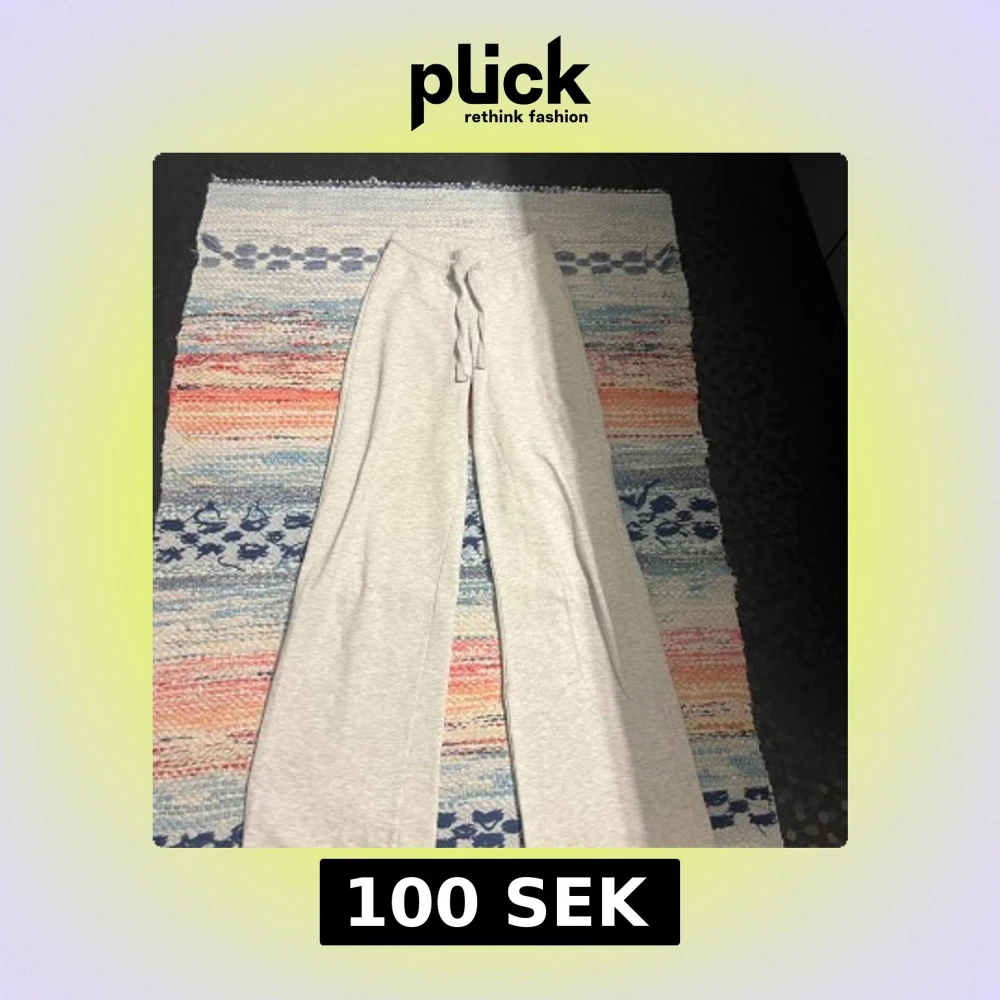 Superbekväma ljusgrå mjukisbyxor från Gina Tricot i storlek XS. Byxorna har breda ben, dragsko i midjan och är gjorda i mjukt bomullsmaterial. Perfekta för chill dagar eller när du vill vara extra comfy.