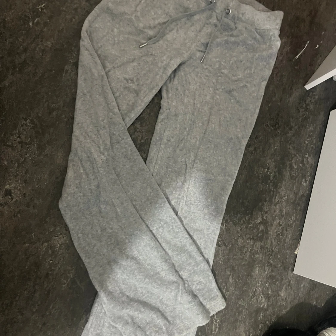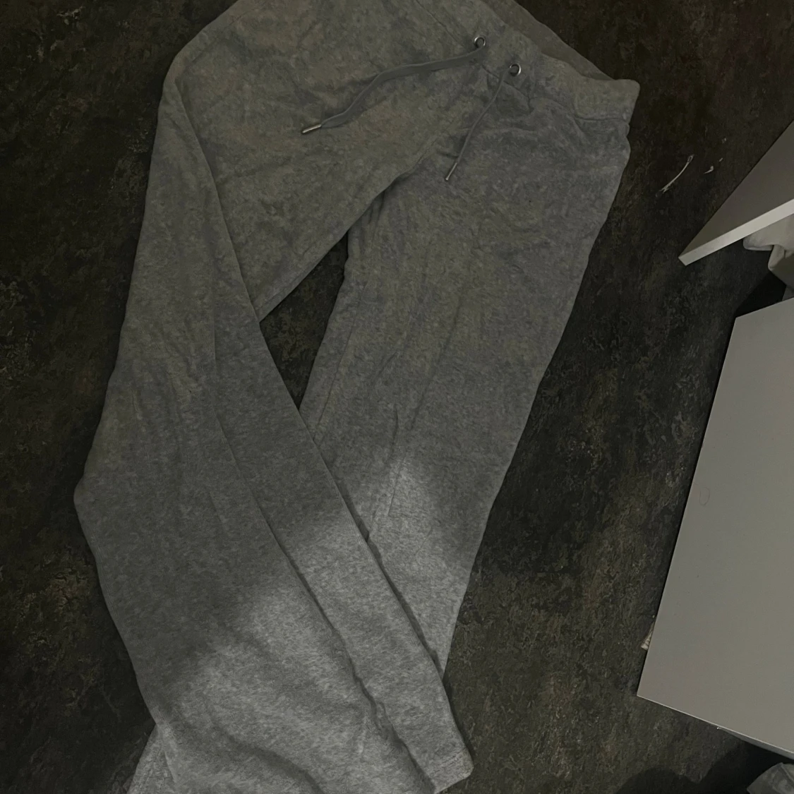 Säljer ett par flare grå mjukisbyxor från Gina Tricot. Byxorna har rynkor i bilderna men det går att lösa