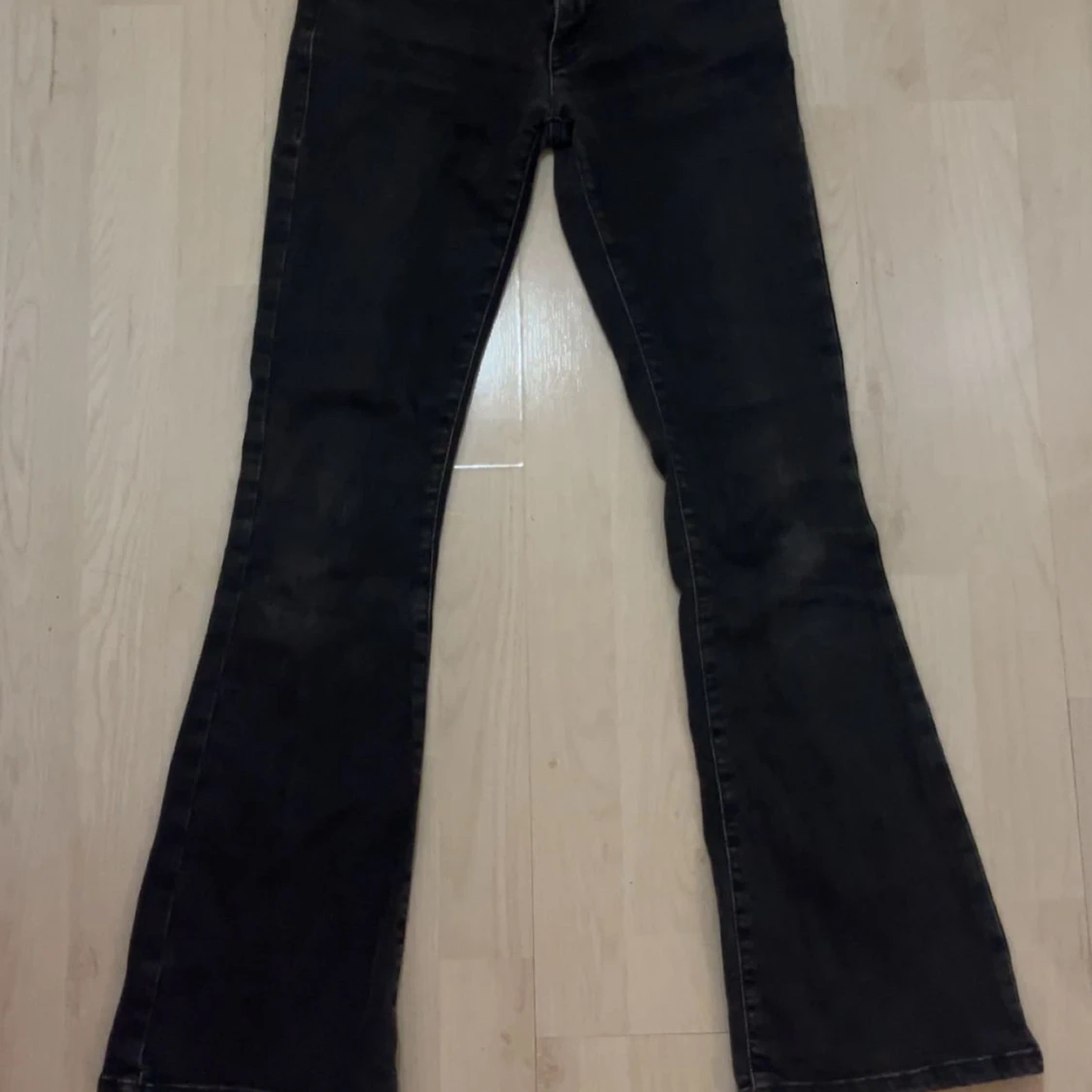 Svarta jeans Gina tricot i modellen low flare med låg midja och utsvängda i benen. Och längd på byxan är 31 perfekt om man är 158-168cm lång